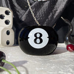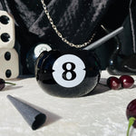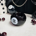 These classic ash trays feature indents for cigs, joints, matches, etc. They are made of ceramic with black glaze and feature an 8 on two sides.