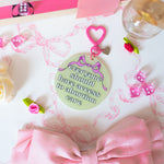 Keychain is made of seafoam acetate and features a pink heart carabiner. Don't ruin your nails, use our keychains!