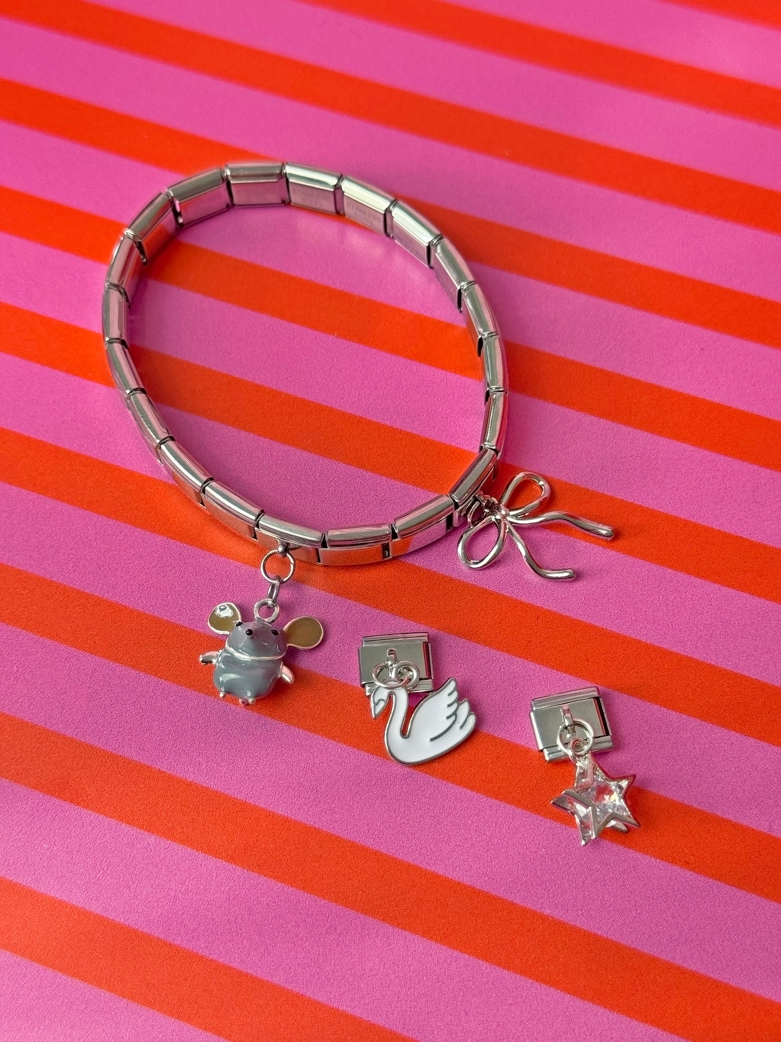 The iconic Italian Charm Bracelet, curated into the perfect Swan Lake theme by us <3 charms are extremely limited so don't wait to get one of these sets!!