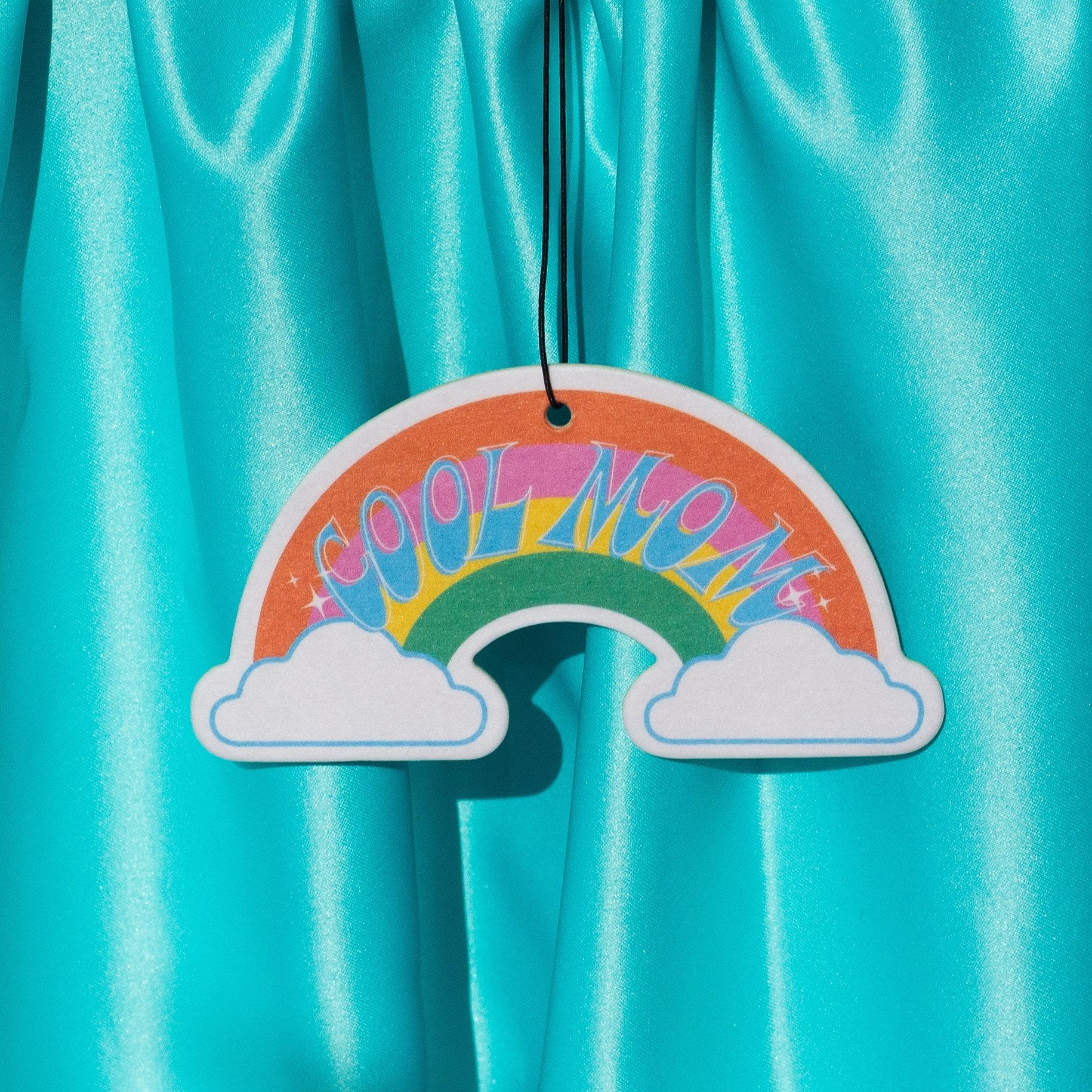Air freshener is lily scented and comes with an elastic cord to loop around a rearview mirror.
