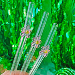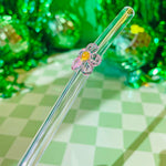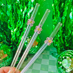 Reusable Glass Charm Straw - Pink Flower