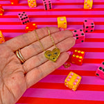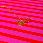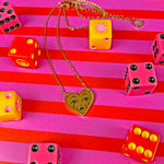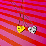 This necklace is for hot sad girls, cute sad girls, or those who love the charm of american traditional tattoos. Made of 14k gold plated stainless steel, a heart-shaped charm is strung on a link chain. Neck is adjustable up to 20". Heart measures 3/4"