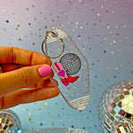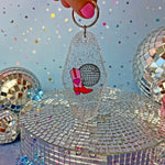 This keychain is adorned with a cute boot and disco ball, drawn by yours truly 😊