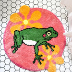 100% polyester with nonslip TPR bottom. Machine washable in cold water, though we recommend hand washing to keep the rug looking brand new! Air dry.