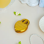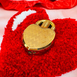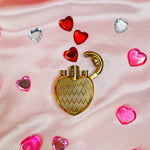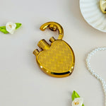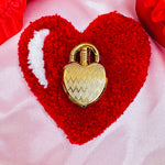 Lighter is gold and shaped like a heart shaped lock. To use the lighter, first FILL IT with butane fuel using the hole in the bottom. To light, lift the top "lock" part and press the button that was underneath the latch.