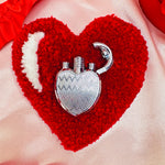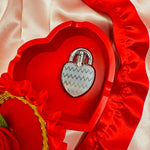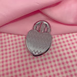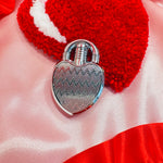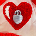 Lighter is silver and shaped like a heart shaped lock. To use the lighter, first FILL IT with butane fuel using the hole in the bottom. To light, lift the top "lock" part and press the button that was underneath the light.
