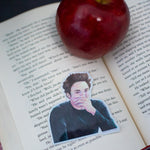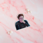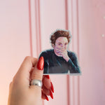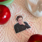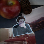 This vinyl sticker features a glittery Edward Cullen covering his nose because he cannot stand the smell of that one girl in class.