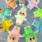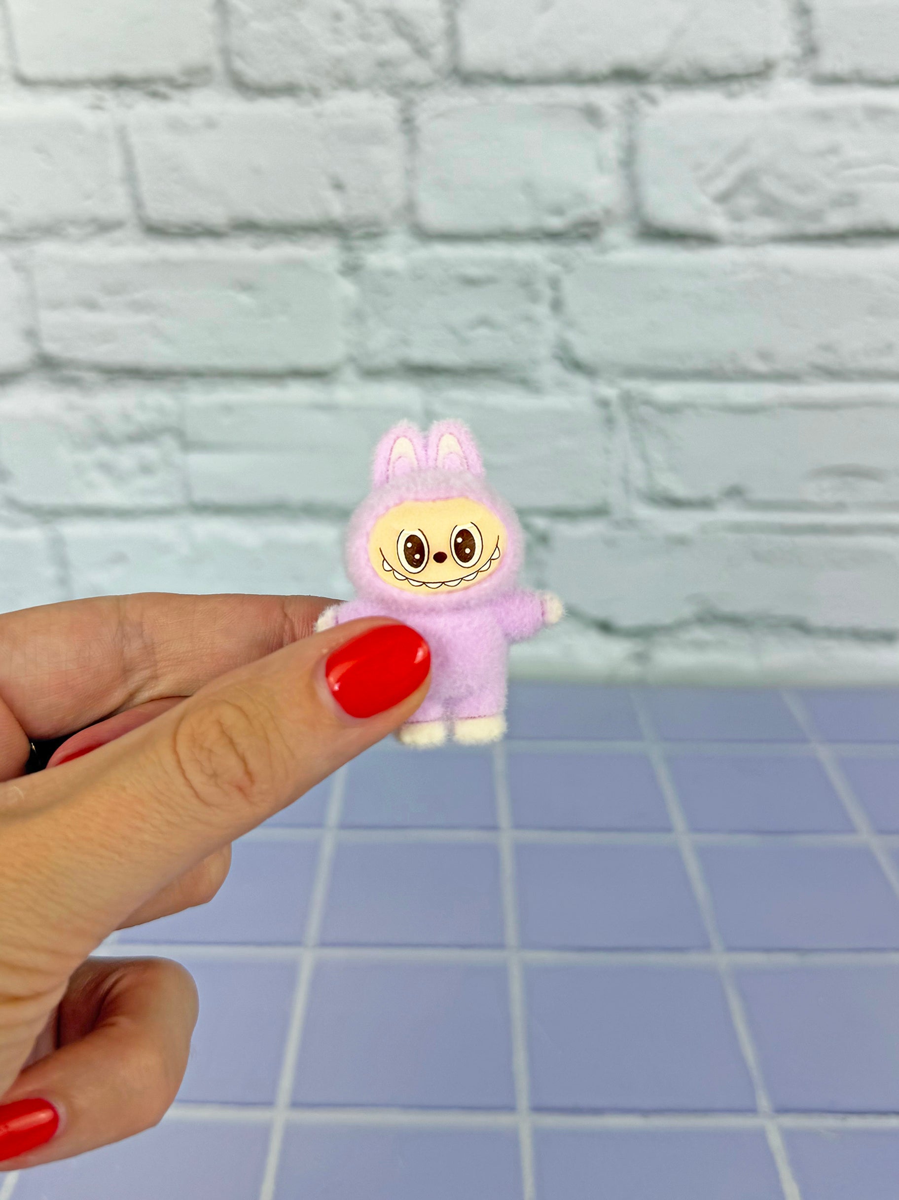 This tiny velvet critter may be small, but they’ve got big personality. Dressed in a soft bunny suit and flashing a silly little monster grin, this collectible cutie is perfectly pocket-sized and ready to tag along on your next adventure!