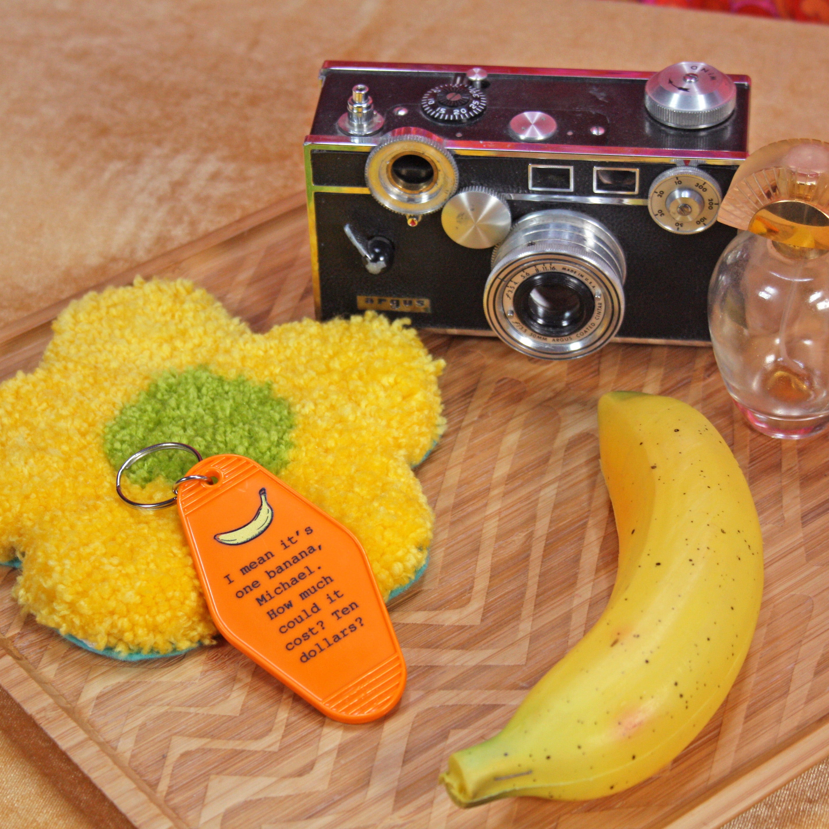 Vintage motel style keychain is 3.5" Arrested Development orange plastic with a 1.25" keyring for all your keychains.
