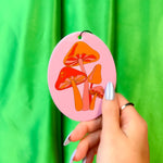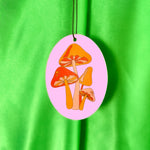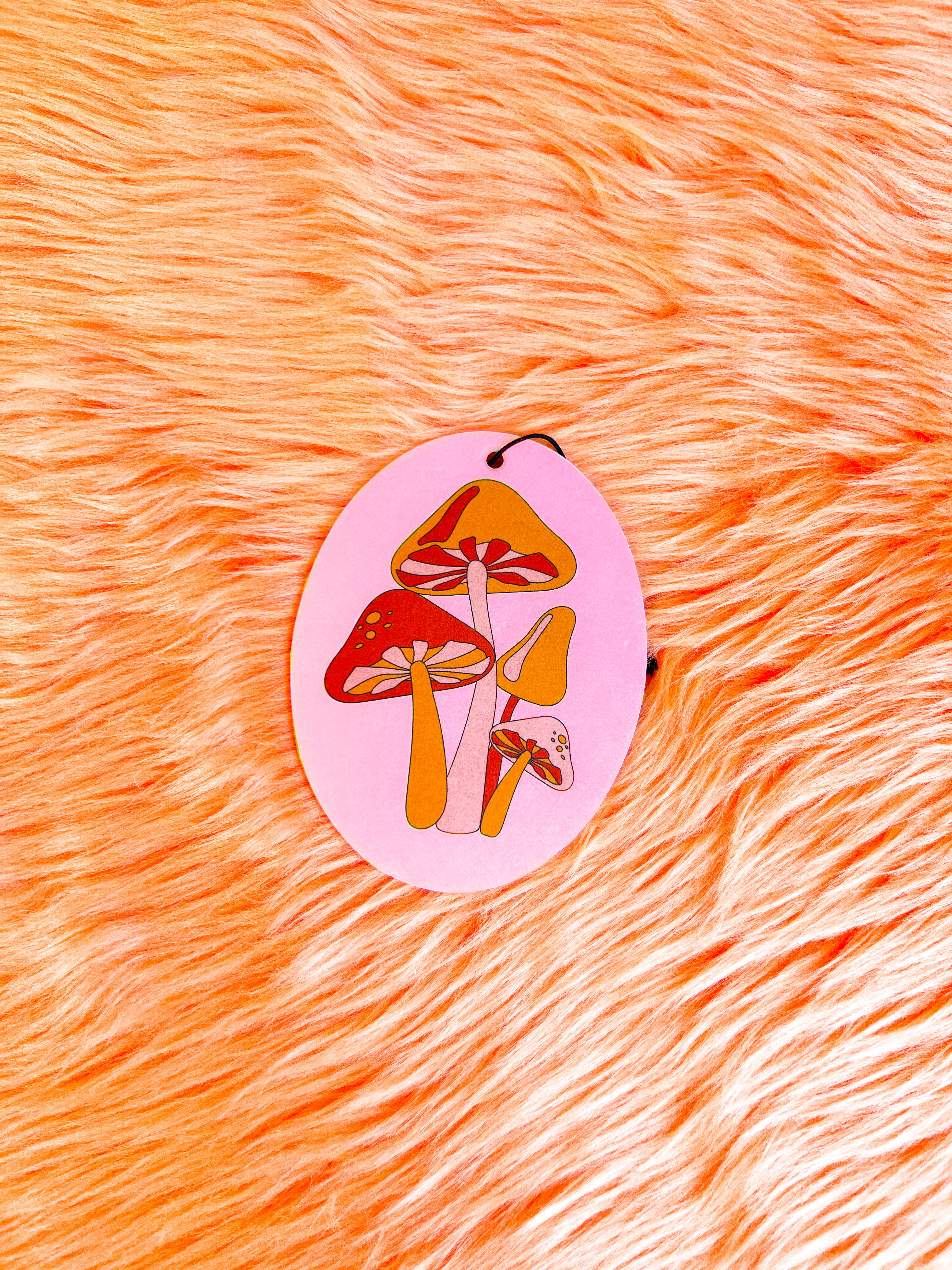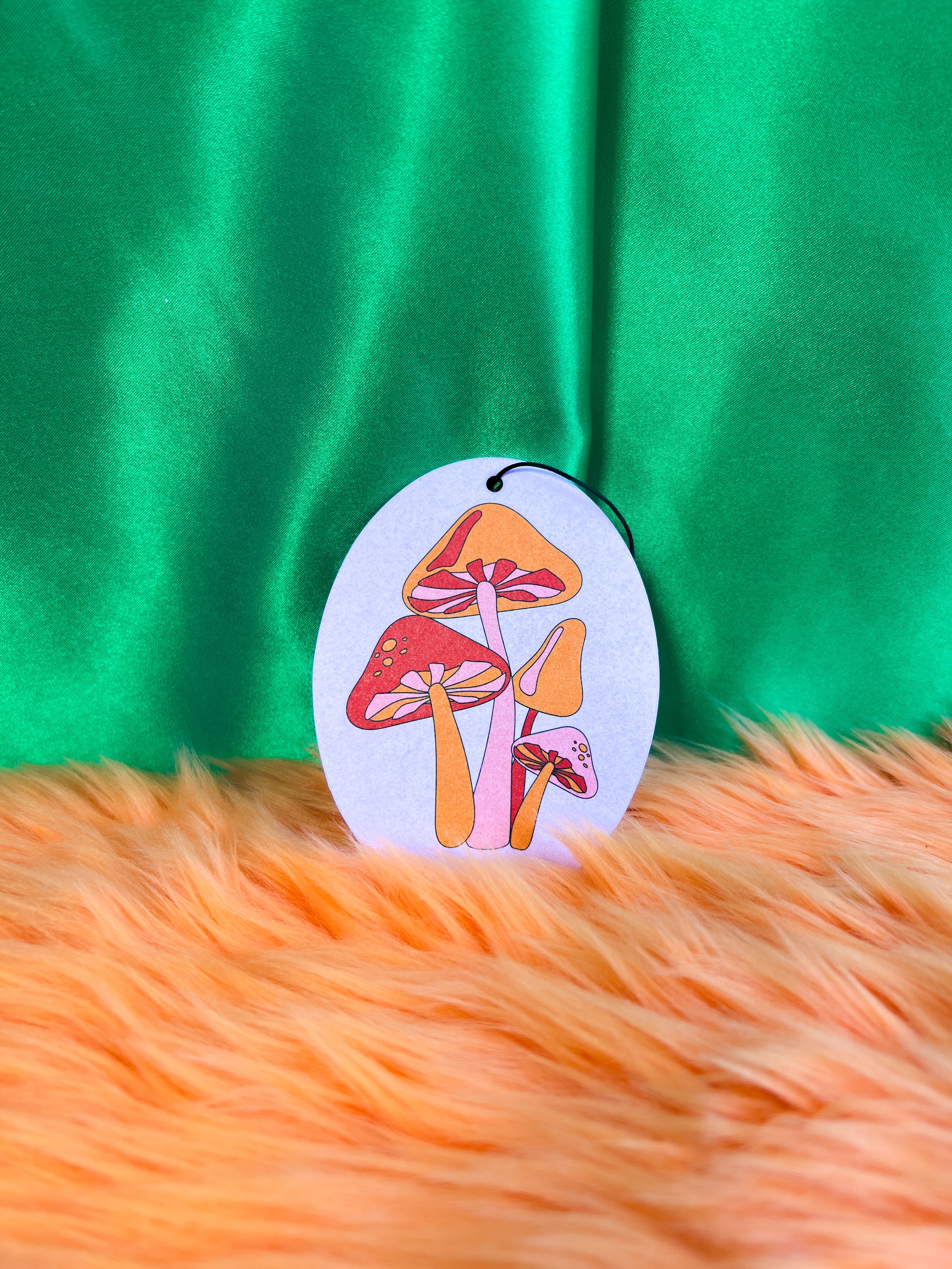 This air freshener has the sweetest lil mushroom fam on it. Aw!