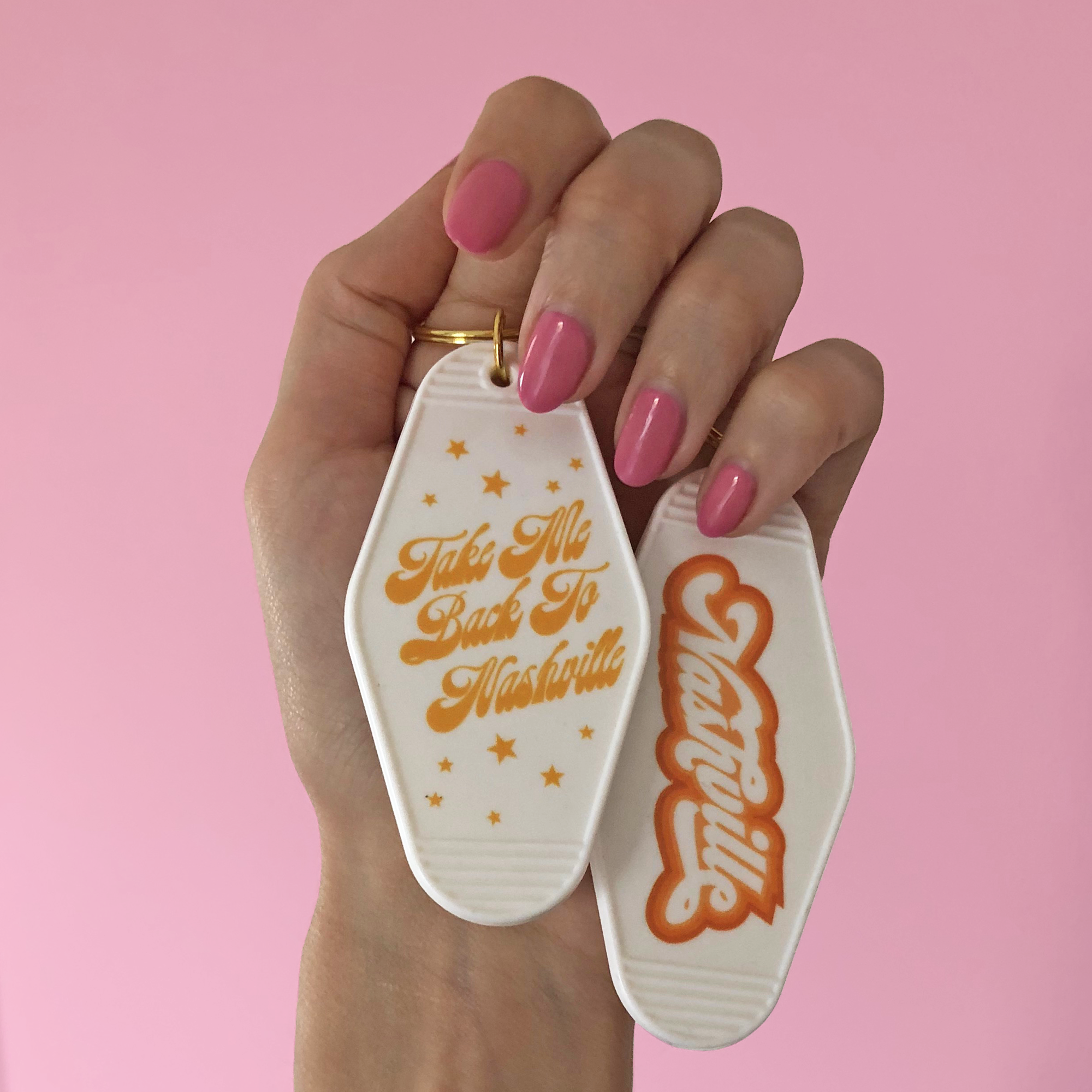Keychain is 3.5" white plastic with a 1.25" keyring for all your keychains.