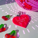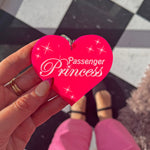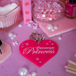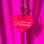 Hot pink heart-shaped keychain that comes with directions for your driver. The front reads Passenger Princess. If that wasn't enough, the back reads- here are my kets, now drive me. Snap this on your keys and enjoy the ride!