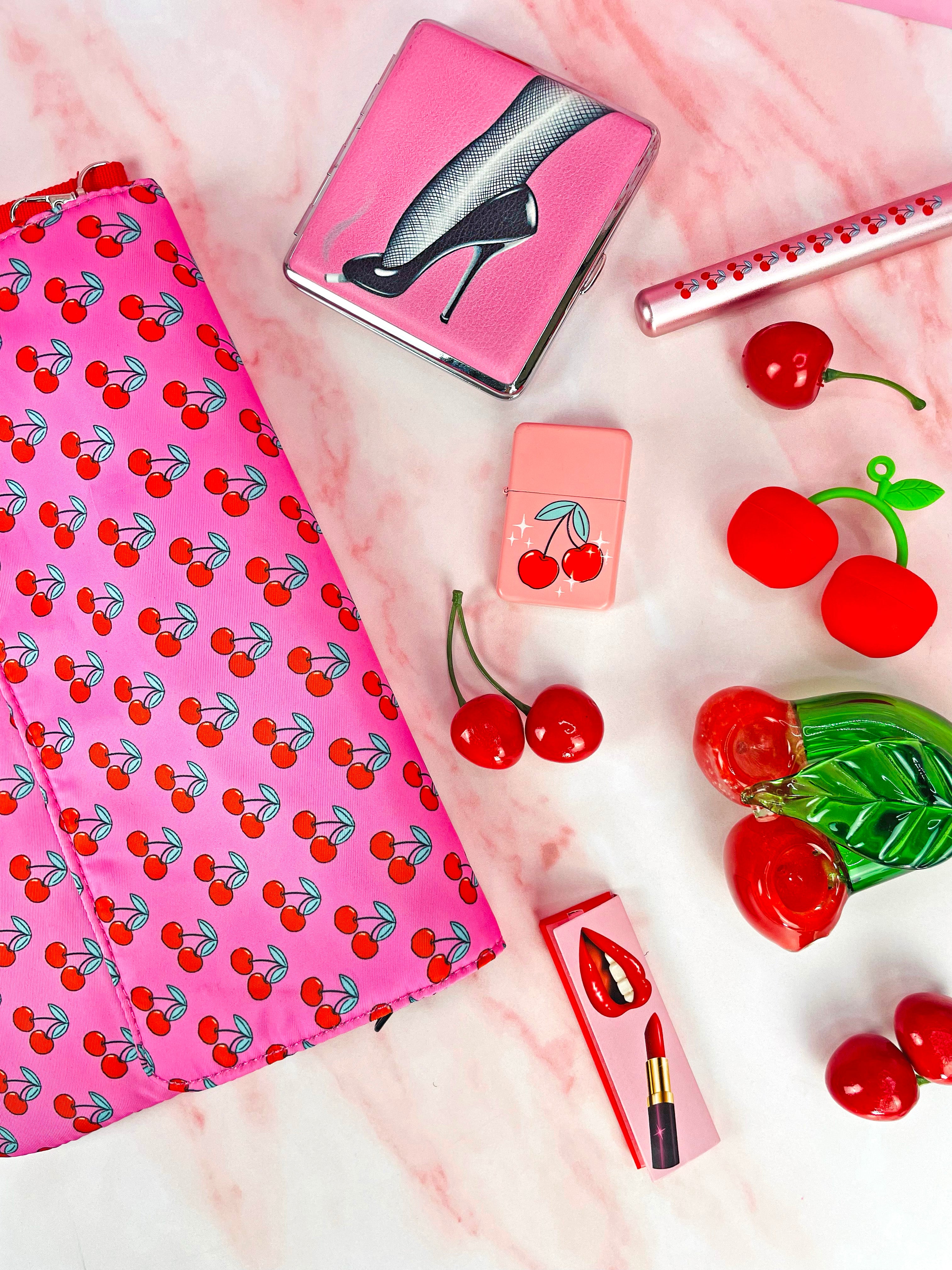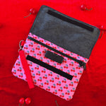 Bag is made of pvc coated canvas. Covered entirely in our chintzy cherry print!