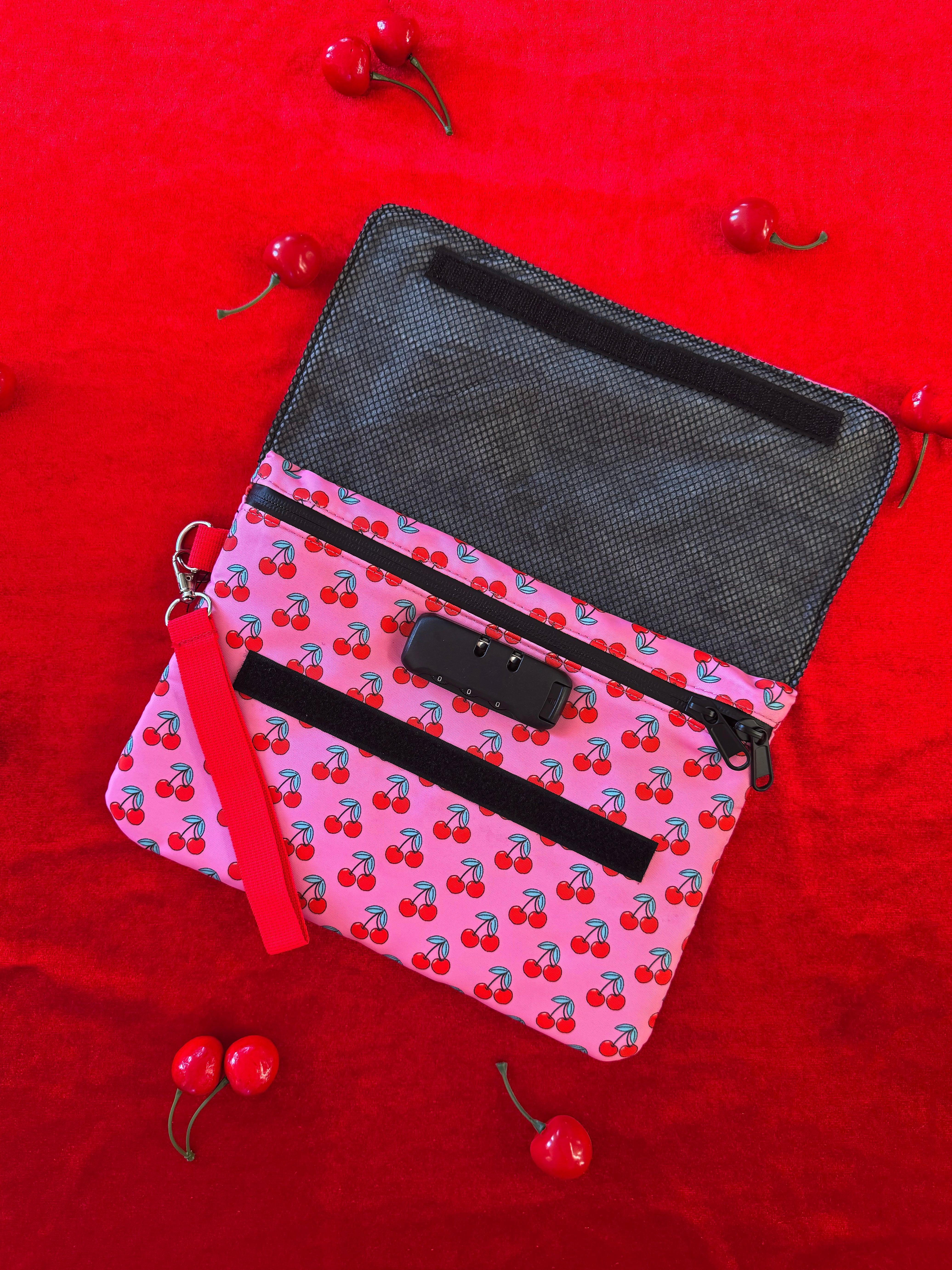 Taylor D. This is everything: smell proof, has a combo to keep unwanted individuals out, a cute as hell pattern, a wristlette for carrying and POCKETS! I feel it's a must buy for really anyone 😘