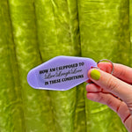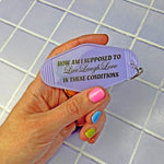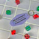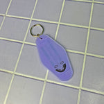 Vintage motel style keychain is 3.5" jelly purple plastic with a 1.25" keyring for all your keychains.
