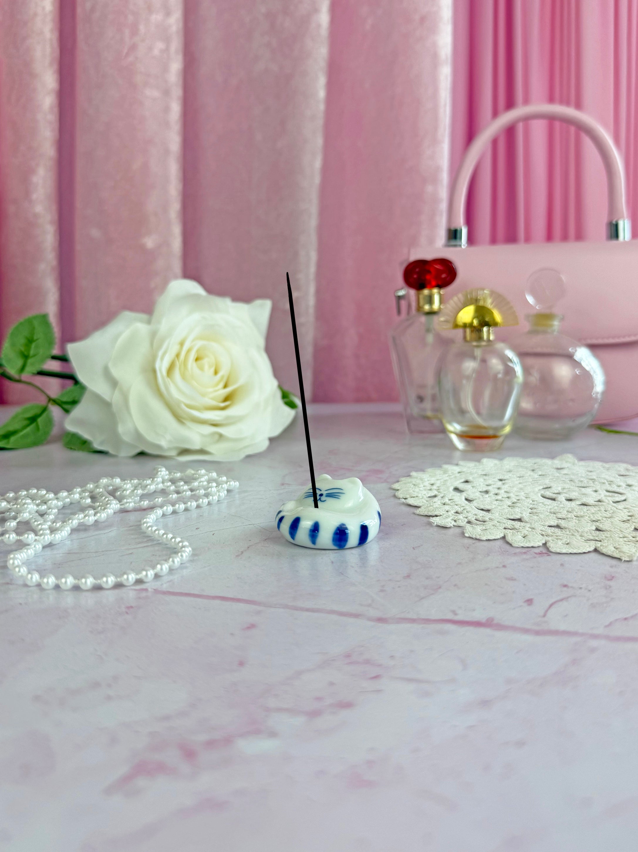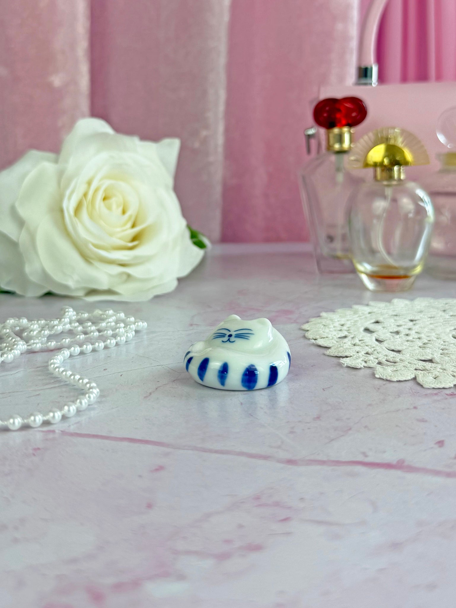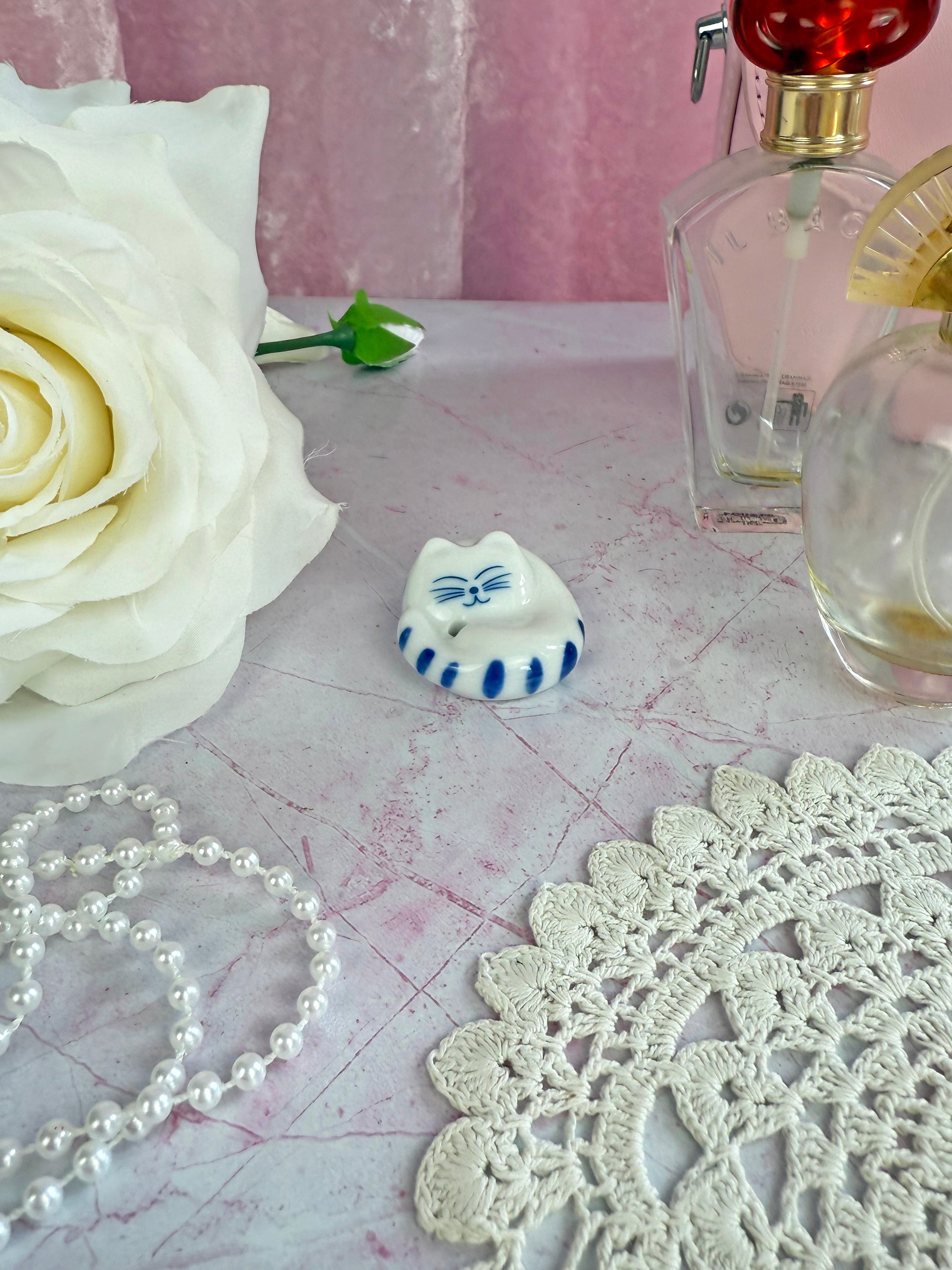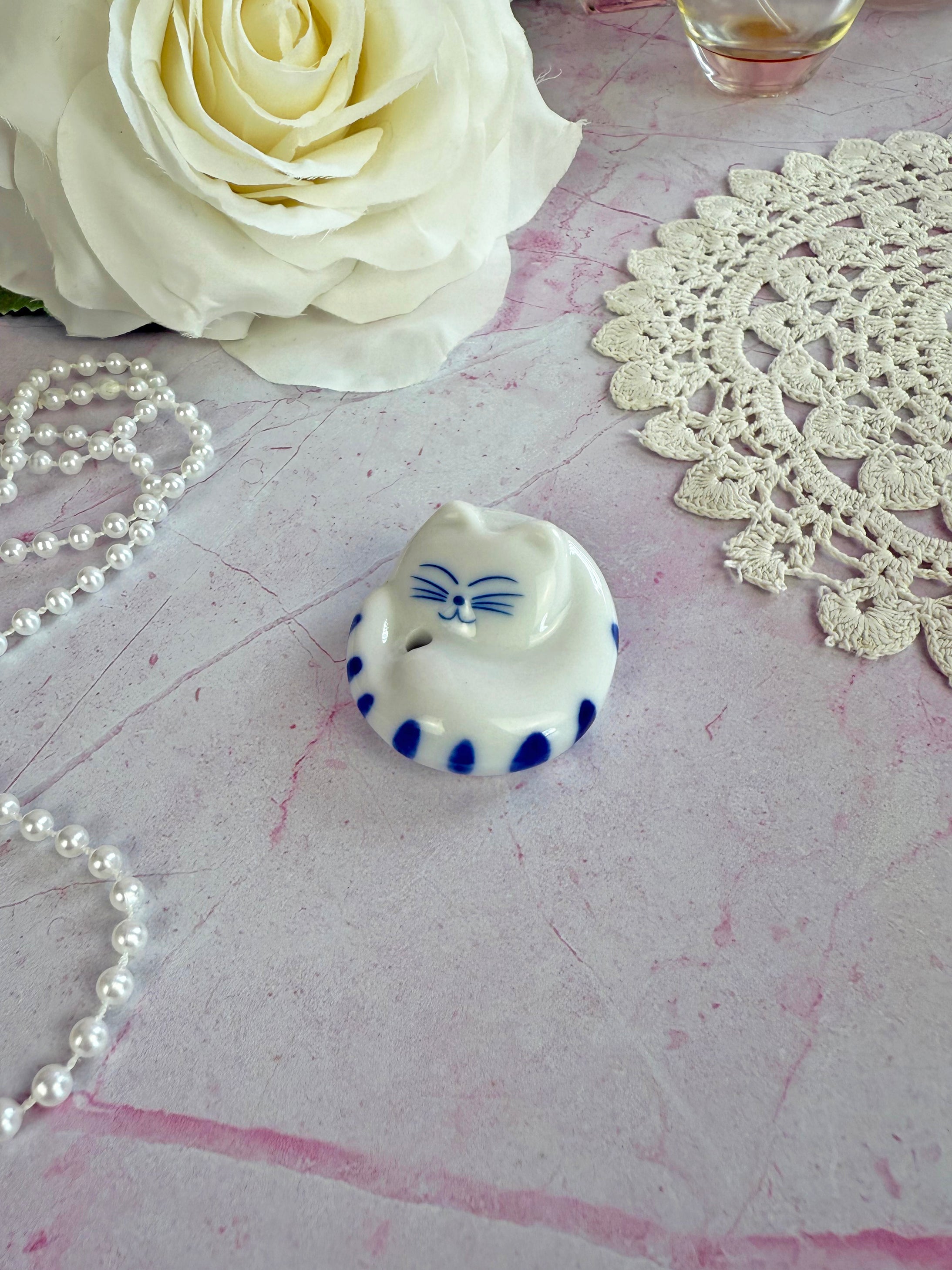 How precious is this sleeping kitty incense holder? Elevate the way you burn incense with this adorable piece! Simply place your incense of choice in the top, right under the kitty's chin, and light! Would look adorable sitting on a shelf or desk when not in use!