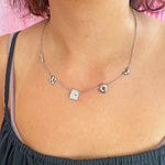 This adorable silver charm necklace features your favorites from the bread basket: a croissant, bagel, classic loaf slice, pretzel, and a breadstick! Delish. Easily elevates any outfit and looks great stacked with other necklaces too!