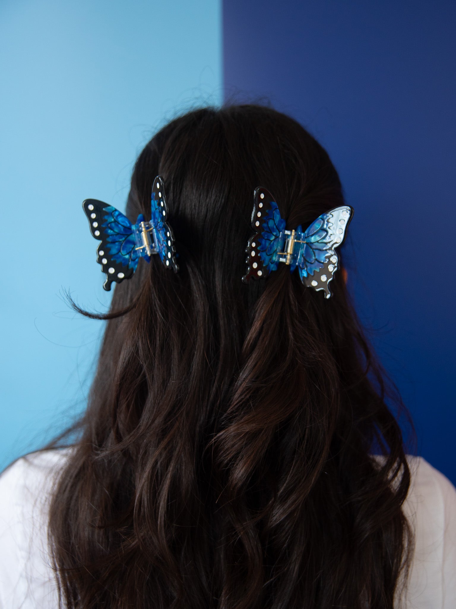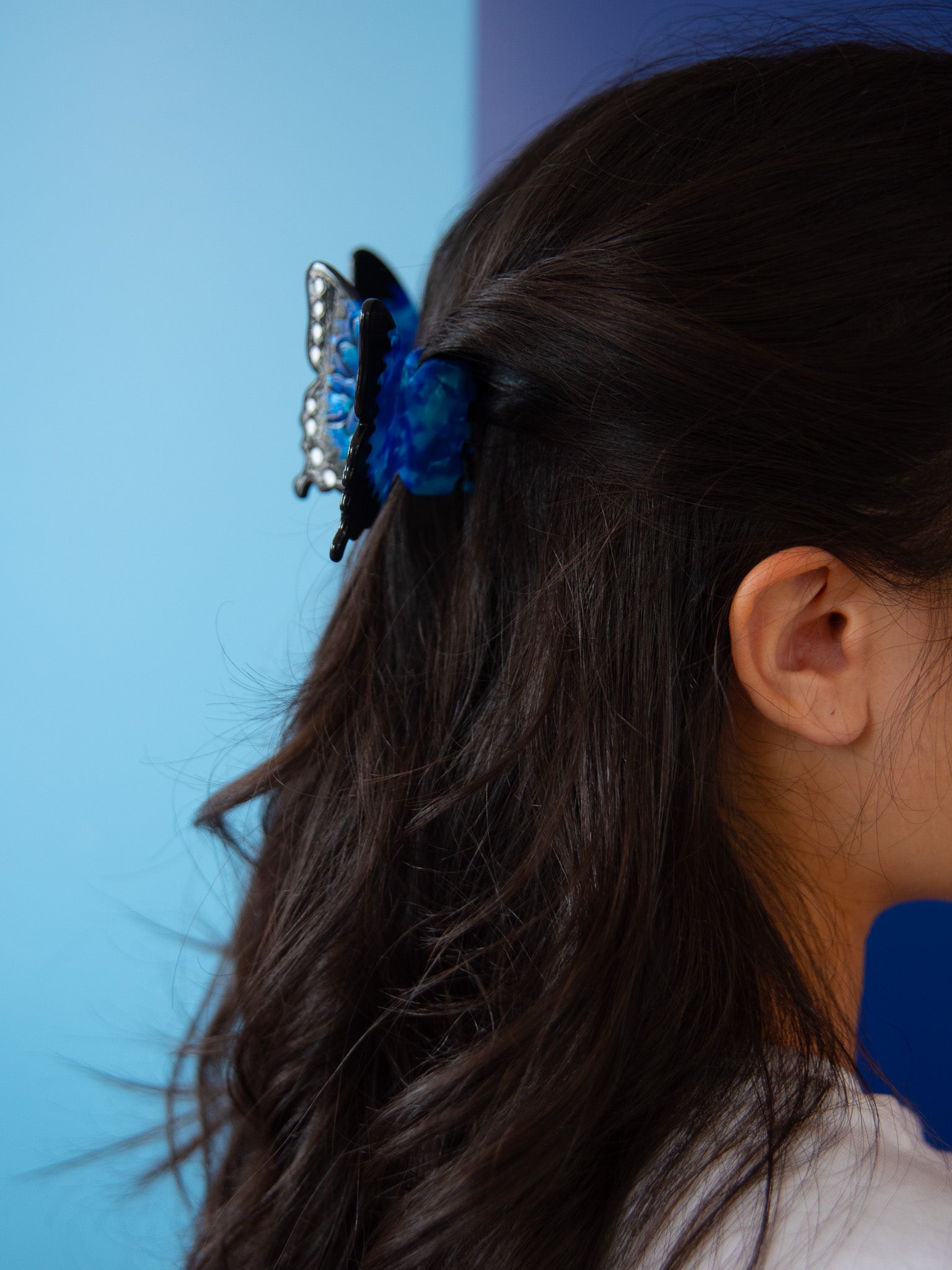 This blue butterfly hair claw is GORG and makes elevating any outfit a breeze! This claw-style clip measures 2.5" x 2.8" and is perfect for a partial updo or holding up a few locks of hair for effortless style!