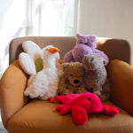 These cute fluffy friends are way cuter than your average, ugly heating pad! Doubles as cute decor when not in use. Stays warm for up to 2 hours and can also be used as a cooling pad! Weighted for anxiety relief and filled with the scent of calming lavender, what more could you want out of a stuffed animal? Perfect for sore muscles, cramps, a chilly night at home, and more!