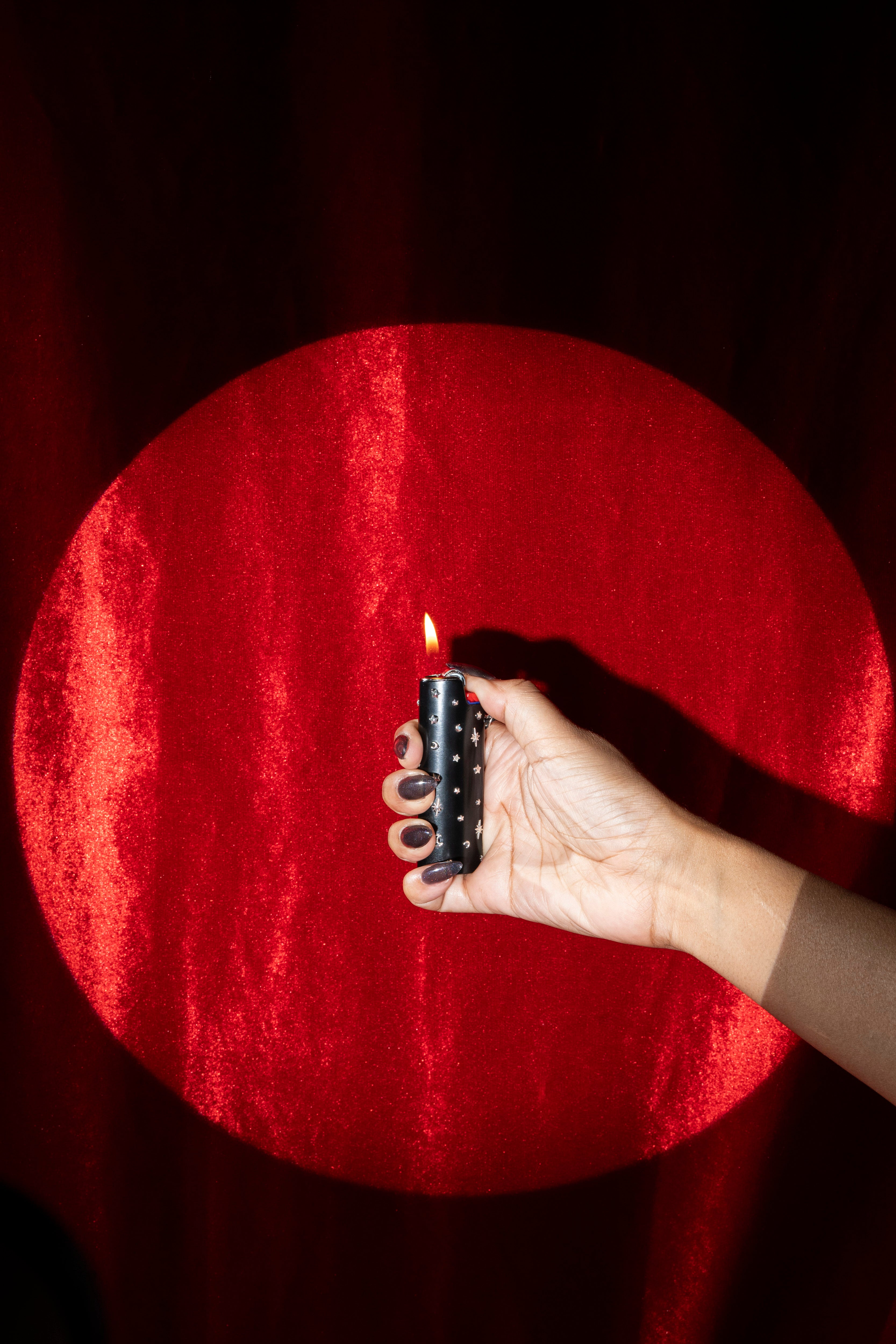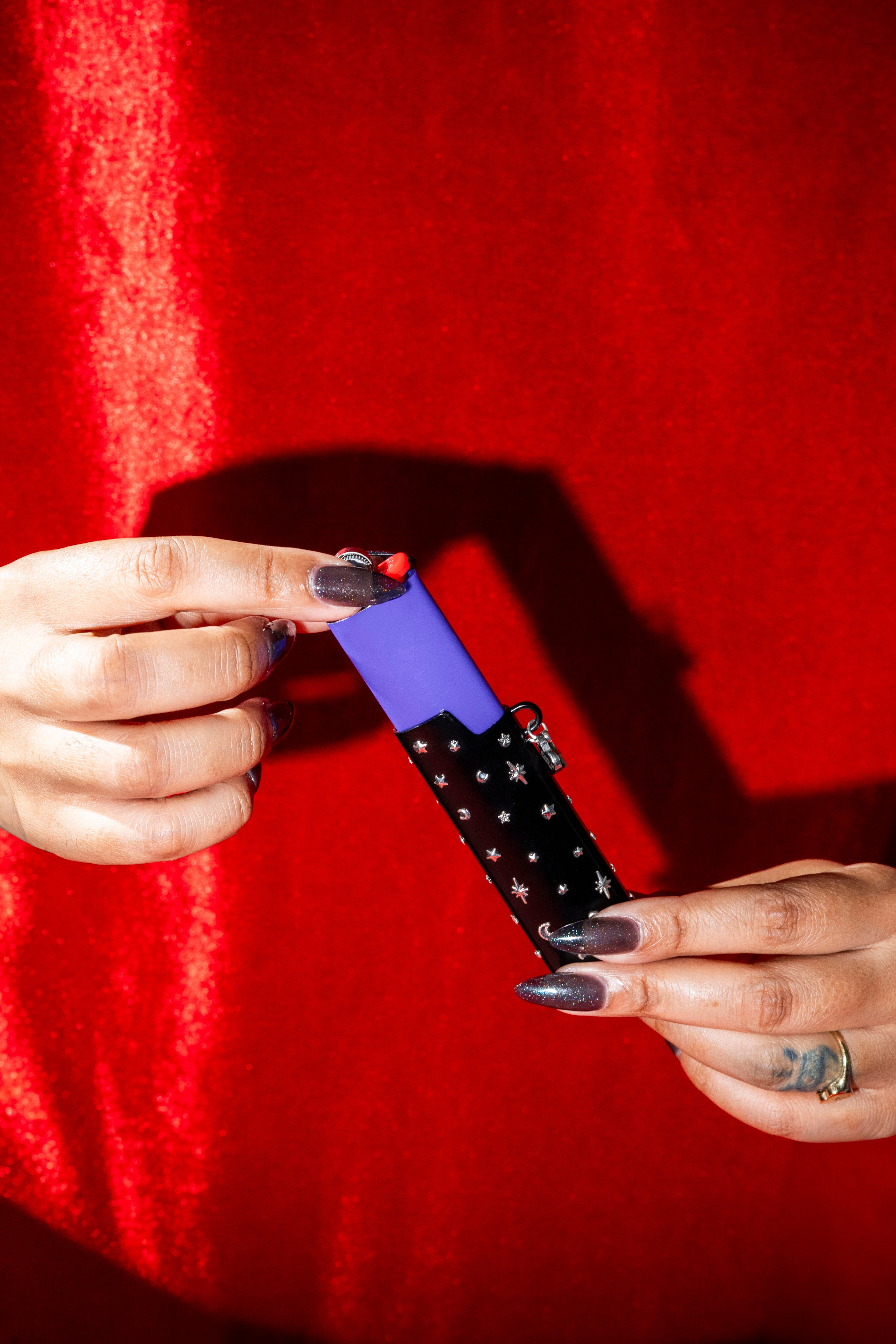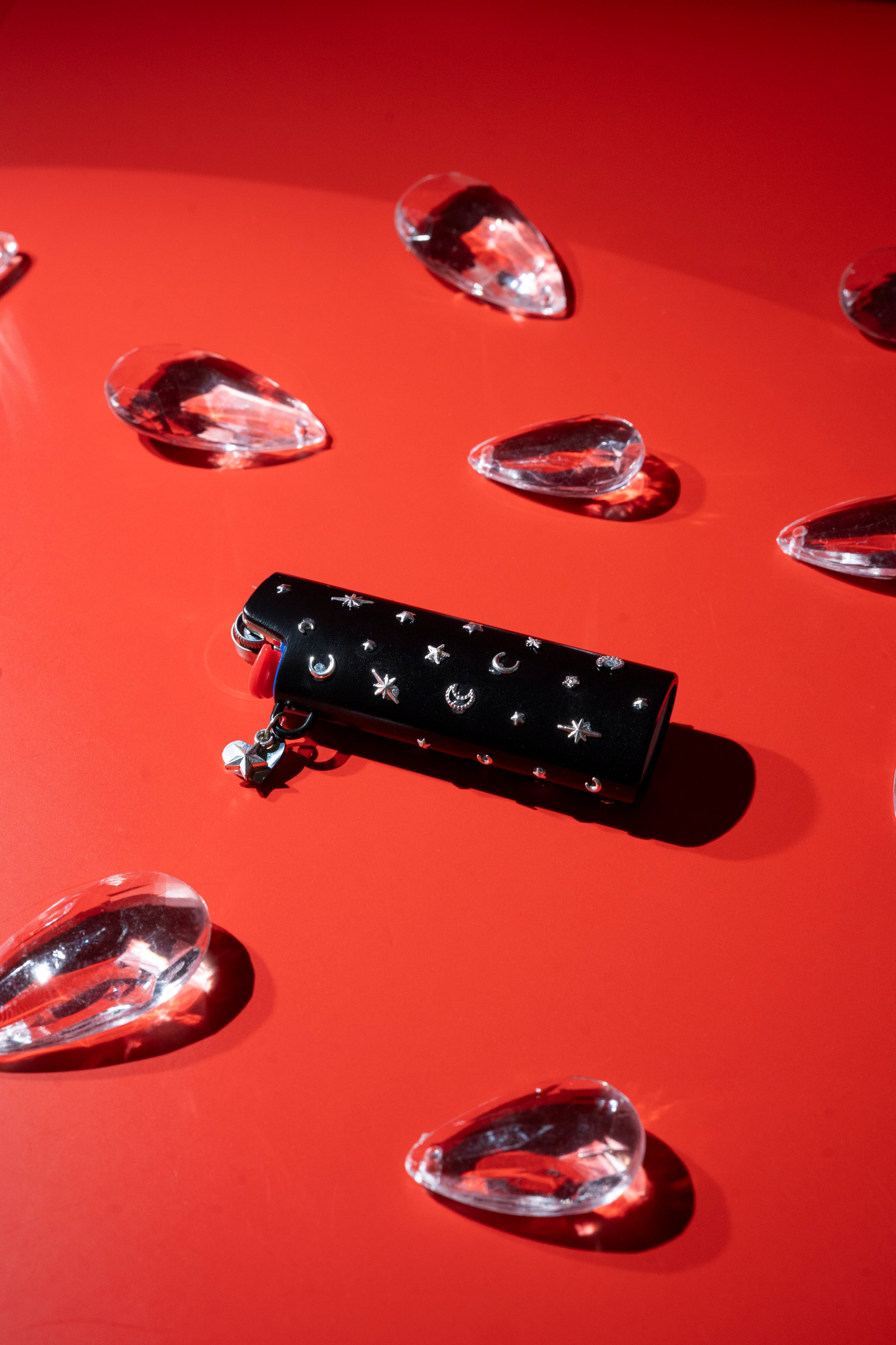 This adorable lighter cover features silver moons and stars from top to bottom! It even has two cute little dangly charms on the side - a heart and a star! Never be seen with a boring old lighter ever again! The best part about these cases is that when your lighter dies, you can just pop a new one in.