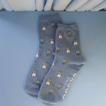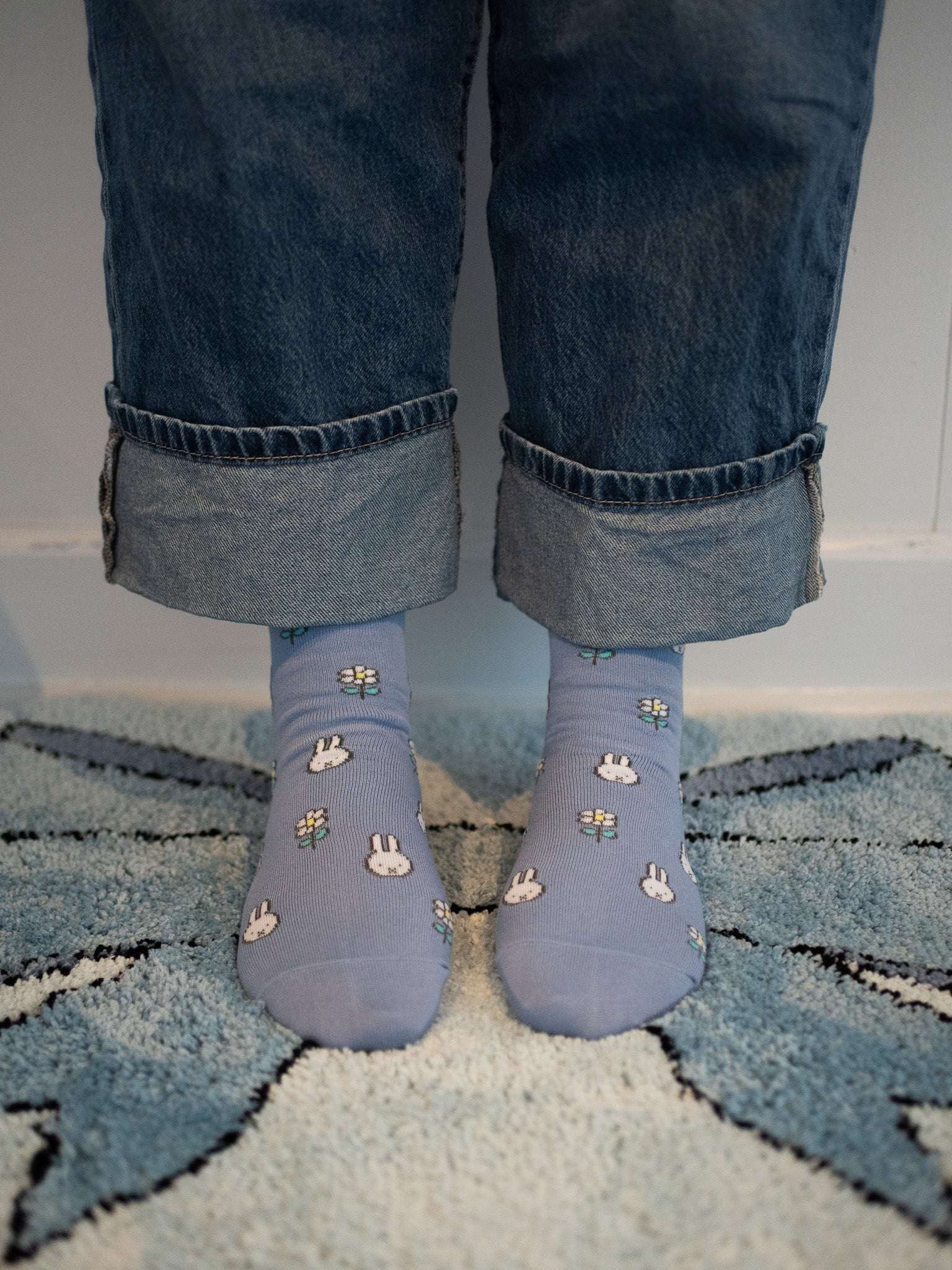 Socks are just bags for your feet, right? These crew socks are woven from soft and stretchy bamboo rayon material and feature a repeating design of Miffy and daisies! AH so cute!