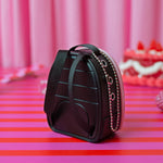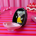 Add this case to your keys, bag, etc and never be lonely again! Perfect for Calico Critters, mini figures, trolls, and the blind box figurines we have here! Comes in a super slay black and pink design with a silver chain <3