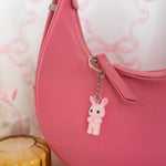 An adorable critter for your keys!! We can't keep these on the shelves in our IRL ASOT shop, so we wanted our long distance friends to be able to get them, too <3 Features one REALLY cute fuzzy pink bunny on a silver keyring.