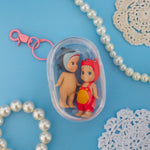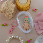 Add this zipper pouch to your keys, bag, etc and never be lonely again! Perfect for Sonny Angels, Calico Critters, and any of the blind box figurines we have here! Has a white zipper and pink carabiner clip <3