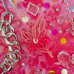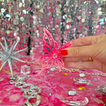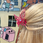 This butterfly-shaped hair claw features a dreamy pink color gradient and a glowy gem in the center! Perfect for a partial updo or holding up a few locks of hair for effortless style.