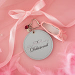Featuring a cute bow print with the word, "delusional" on the front, simply open the flap to reveal a little mirror. The carabiner on this keychain is a silver heart shape with a ballet slipper, rosebud, and heart charm included! Mirror is made of leatherette.