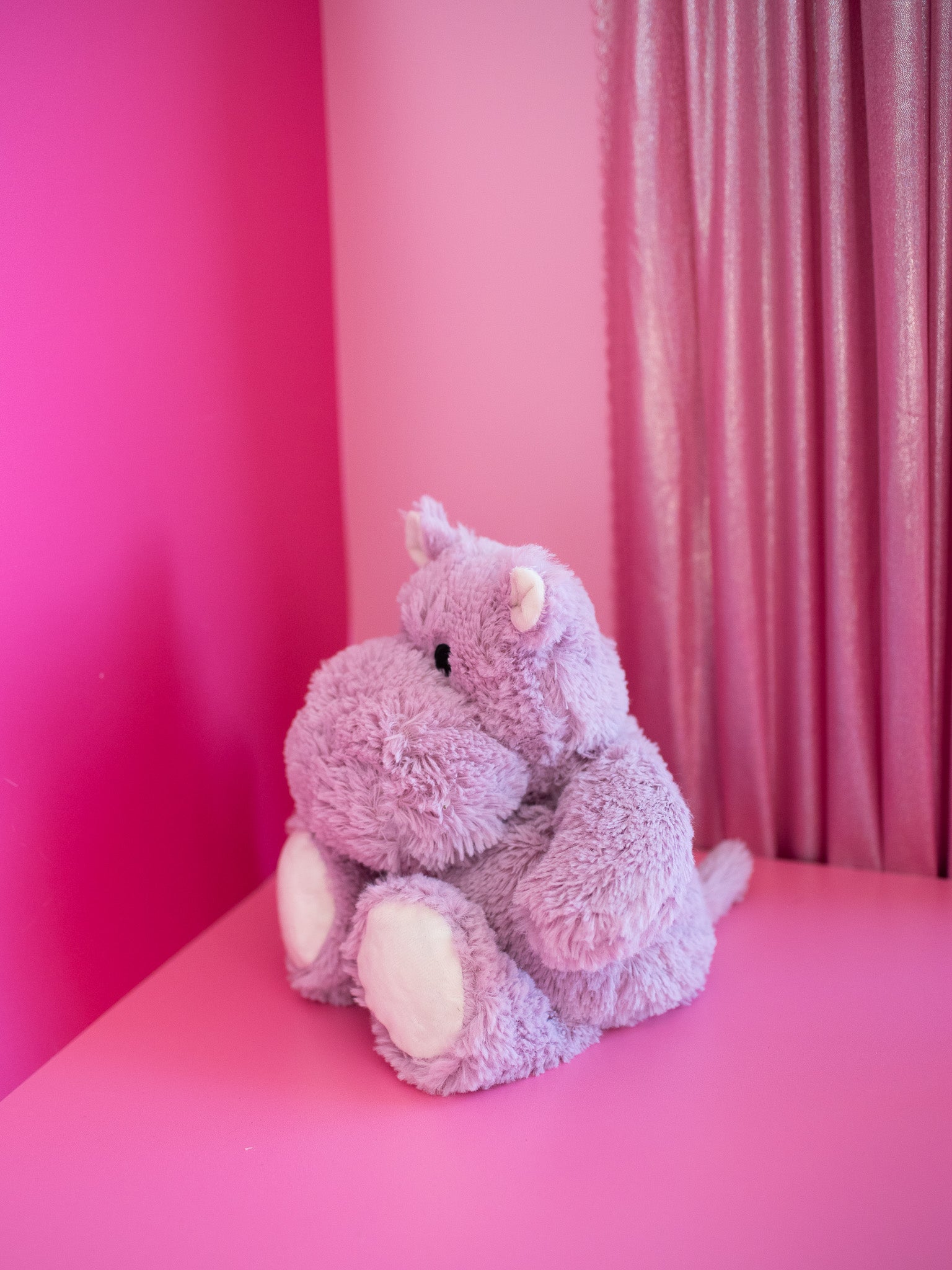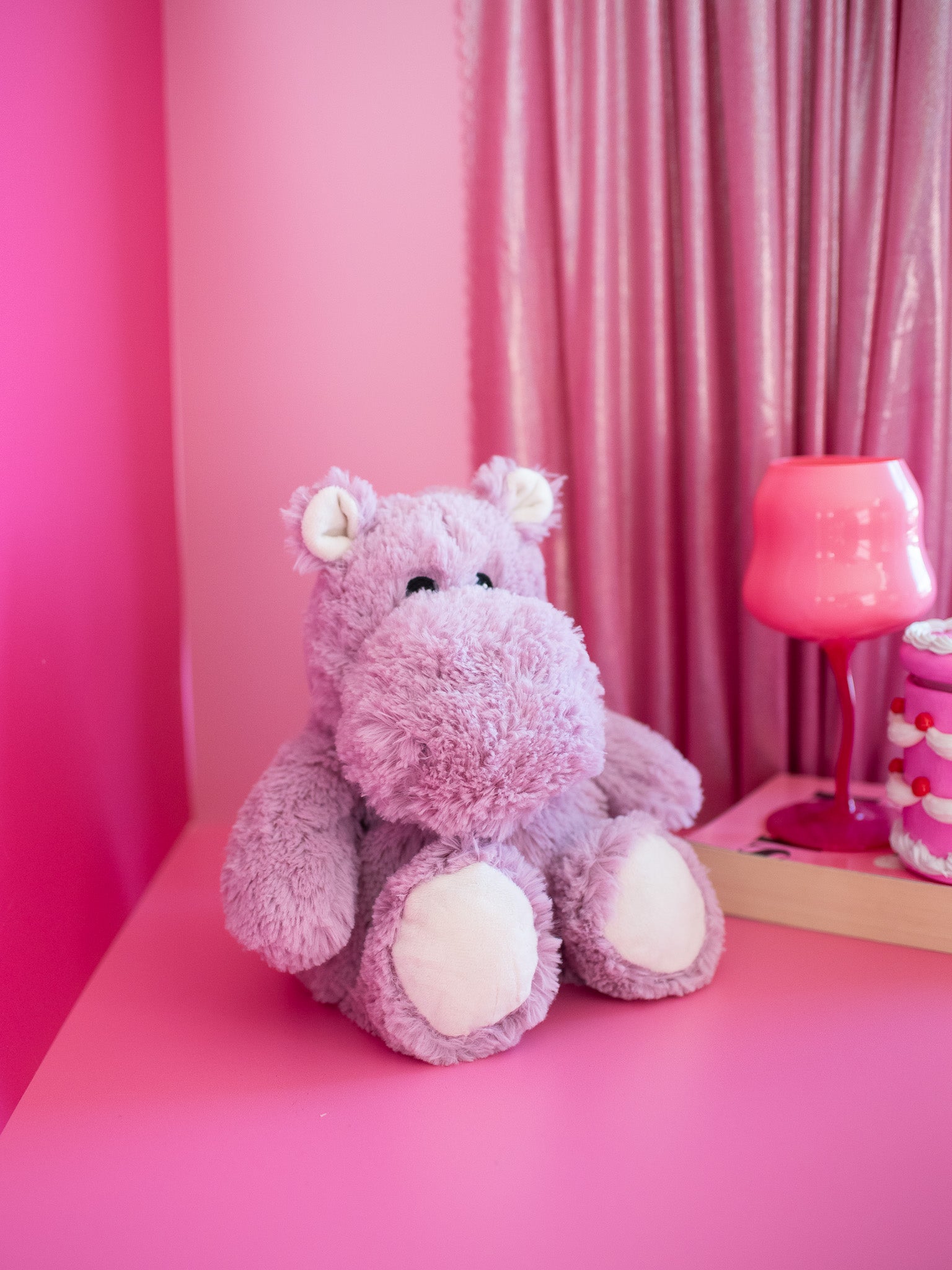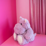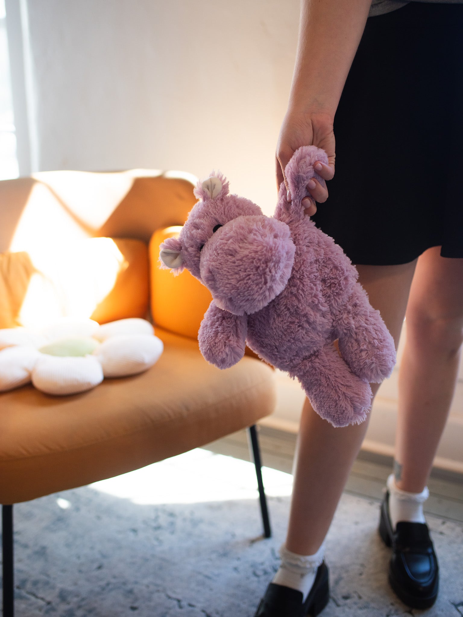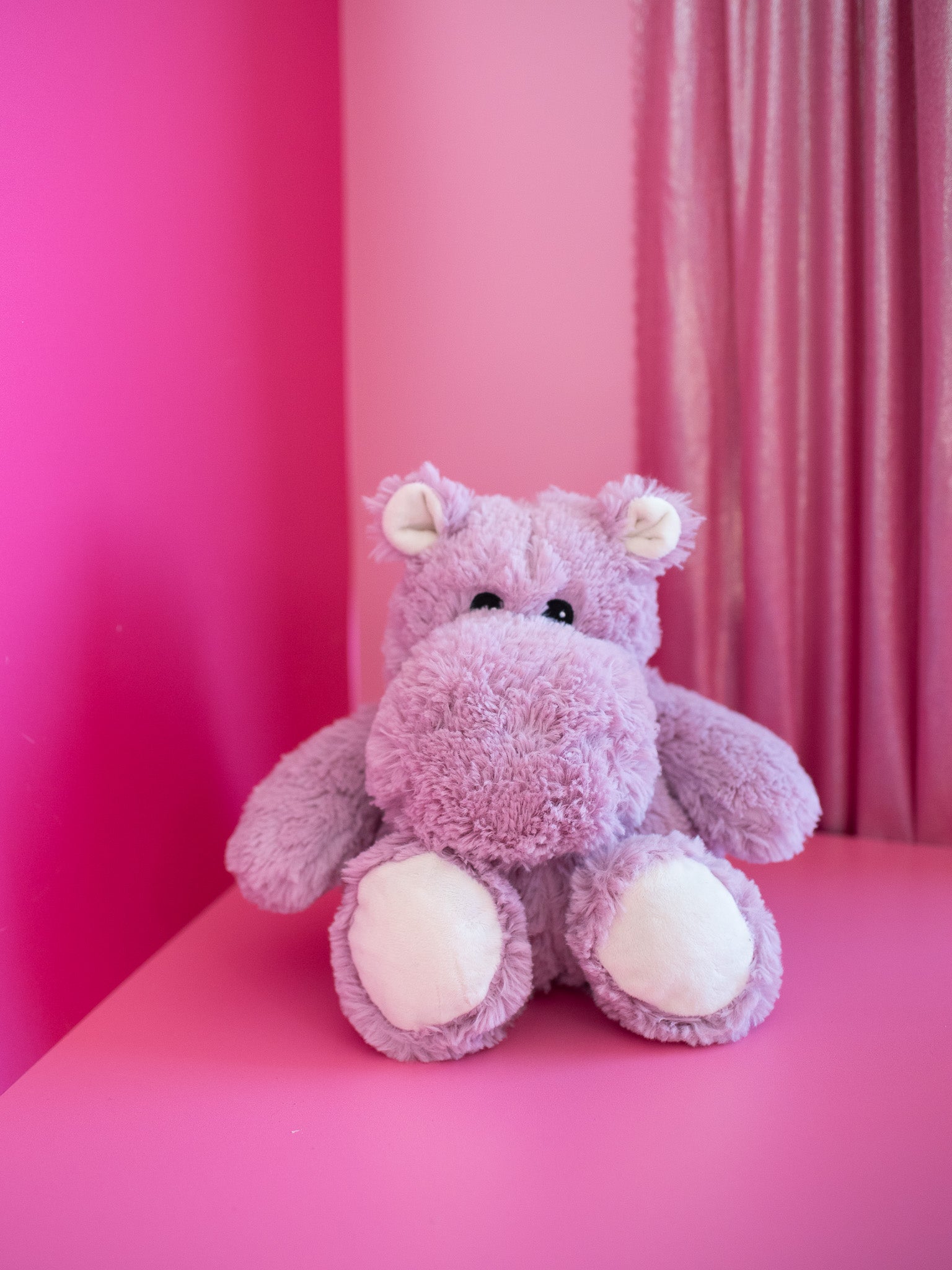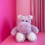 Hip Hippo Hooray! This cutie purple hippo is the perfect friend to help keep you warm on a cozy night!