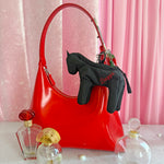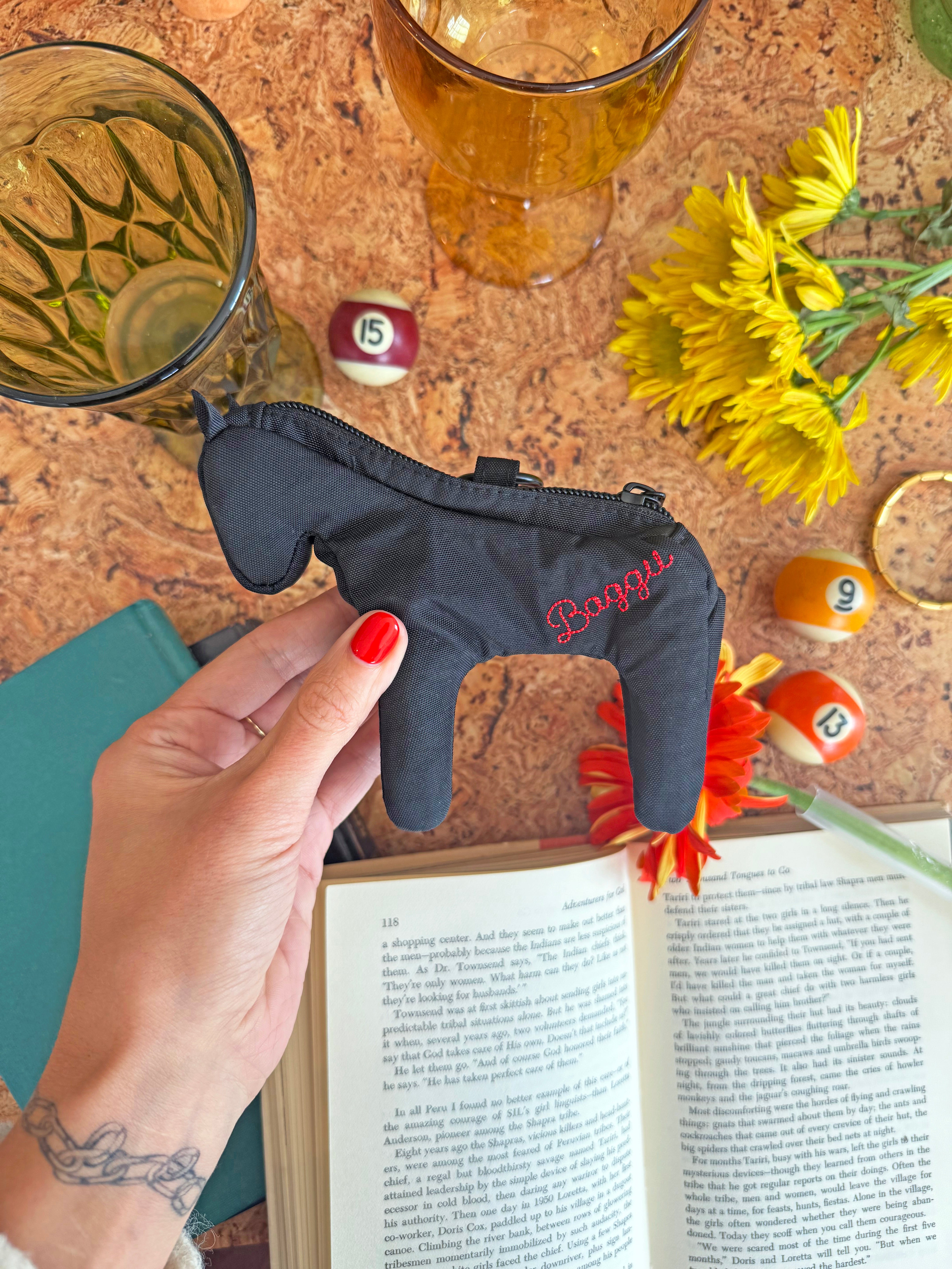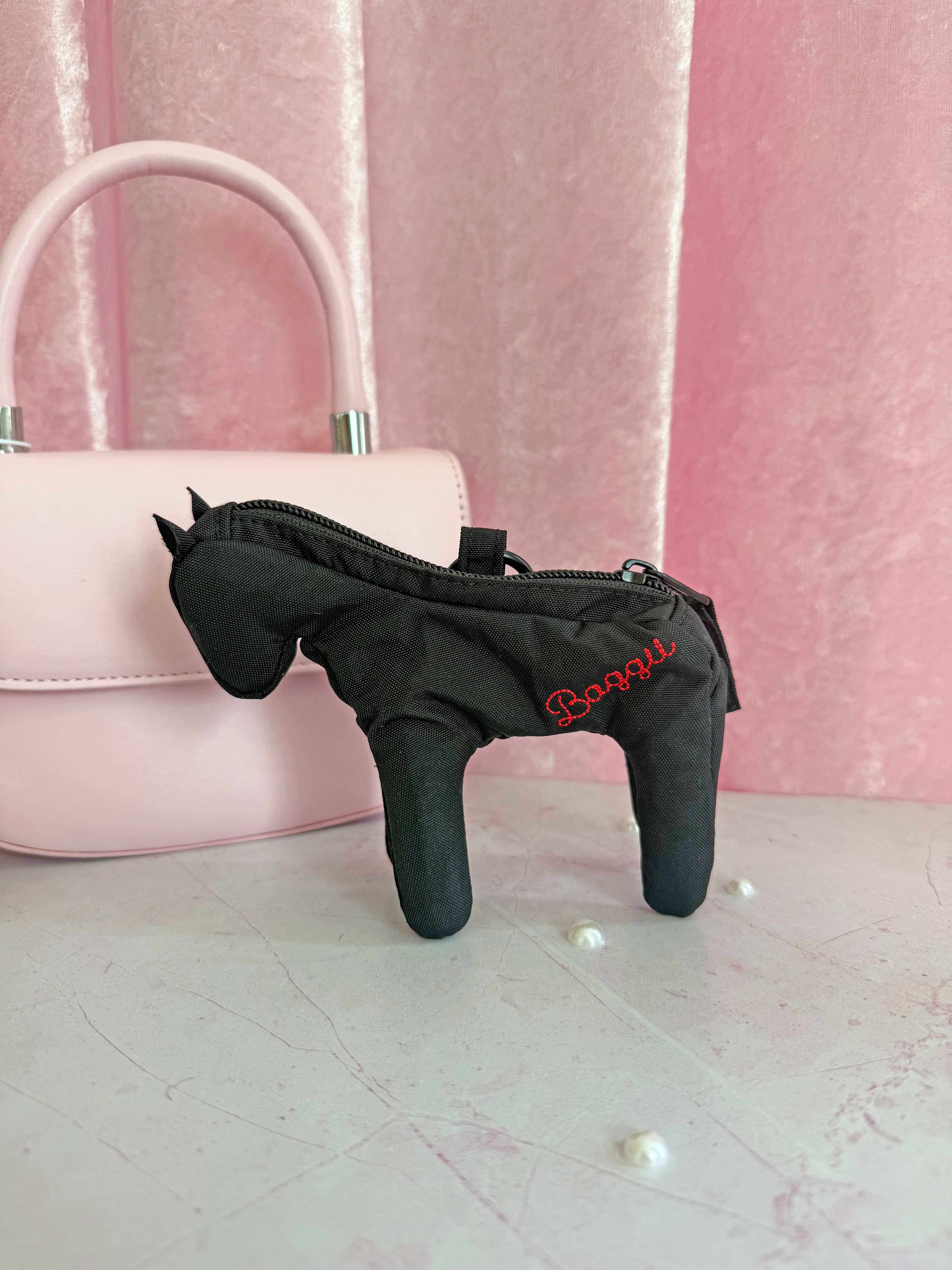 The bag charm of our dreams! This Baggu pouch is horse-shaped (duh), complete with two little ears, and a tail that doubles as the zipper! She zips closed to keep your tiny treasures safe, and has a removable metal keyring so you can easily clip her to your bag or keys! The perfect size for stashing your keys, cash, sonny angels, etc.