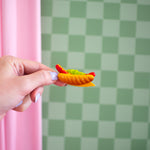Jazz up your boring fridge with this adorable hot dog magnet! This cutie magnet features ALL the perfect toppings - mustard, lettuce, cheese... we're drooling just thinking about it. Perfect for fridges, lockers, calendar boards, etc!