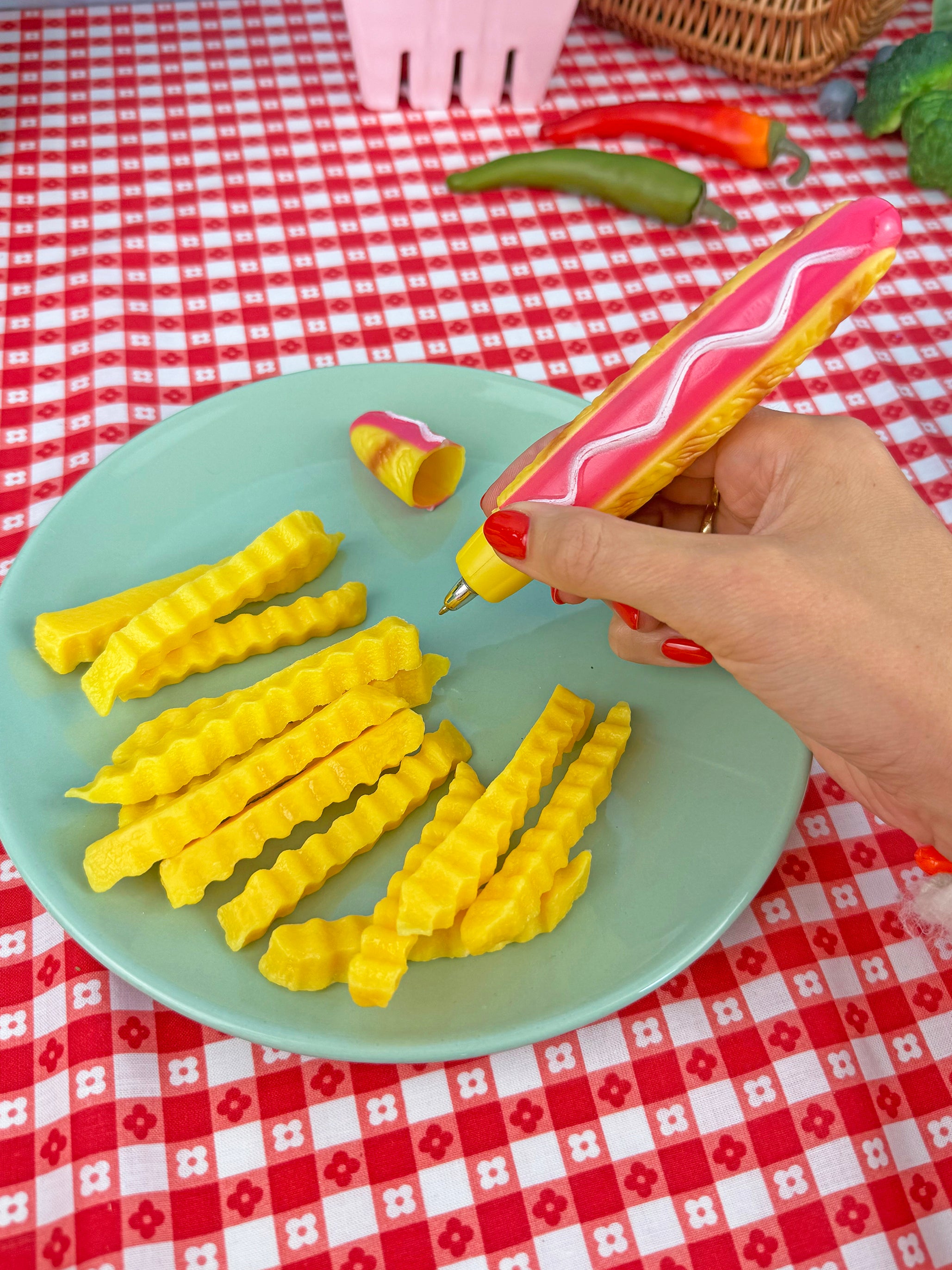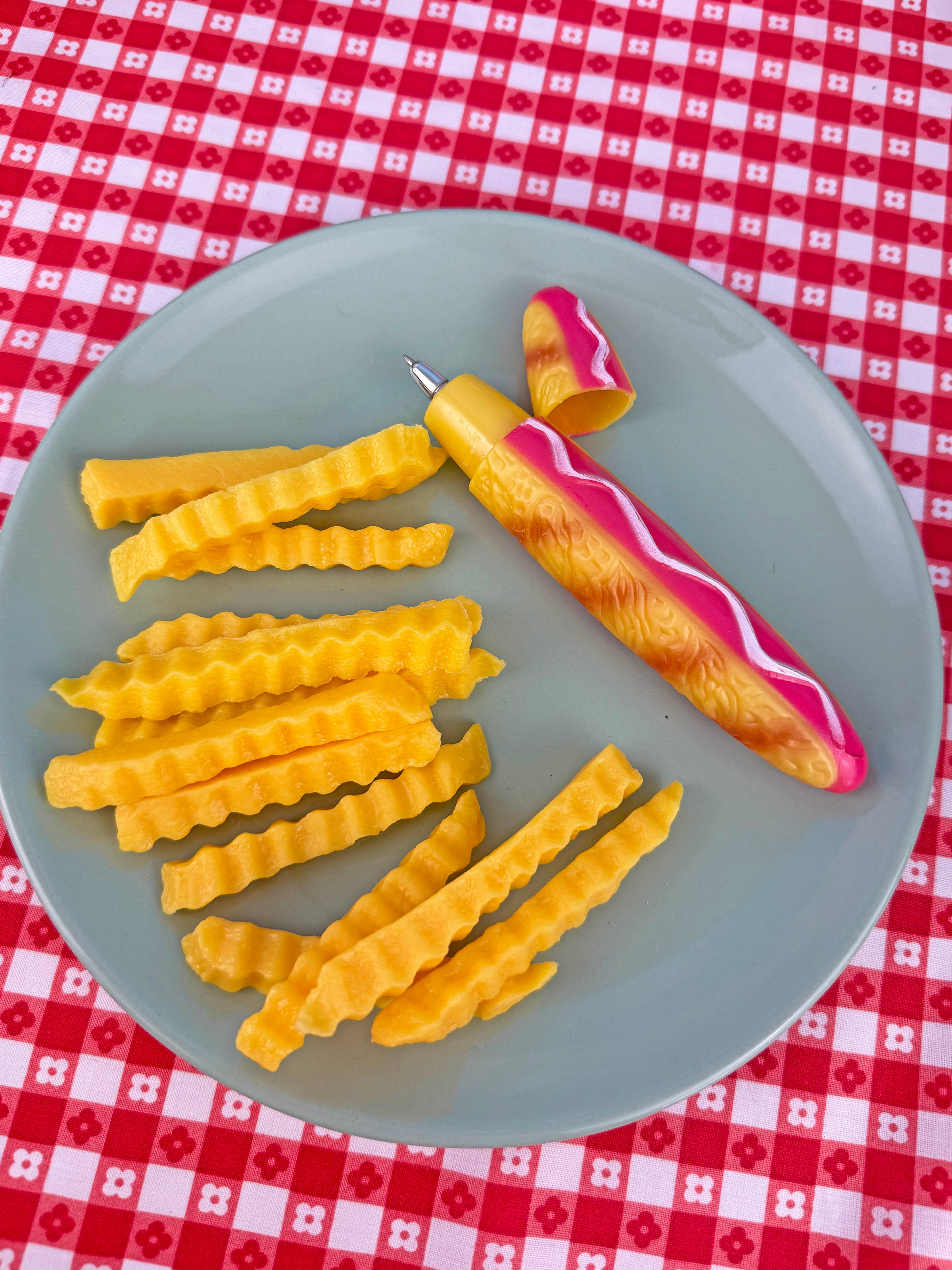 Who knew writing could be this delicious? This pen even has a magnetic back, so it's perfect to keep on your fridge and use to write your grocery lists! The tip of the hot dog also functions as a cap to keep your pen from drying out! Would look adorable sitting in your pen holder when not in use and makes a great kitschy gift!