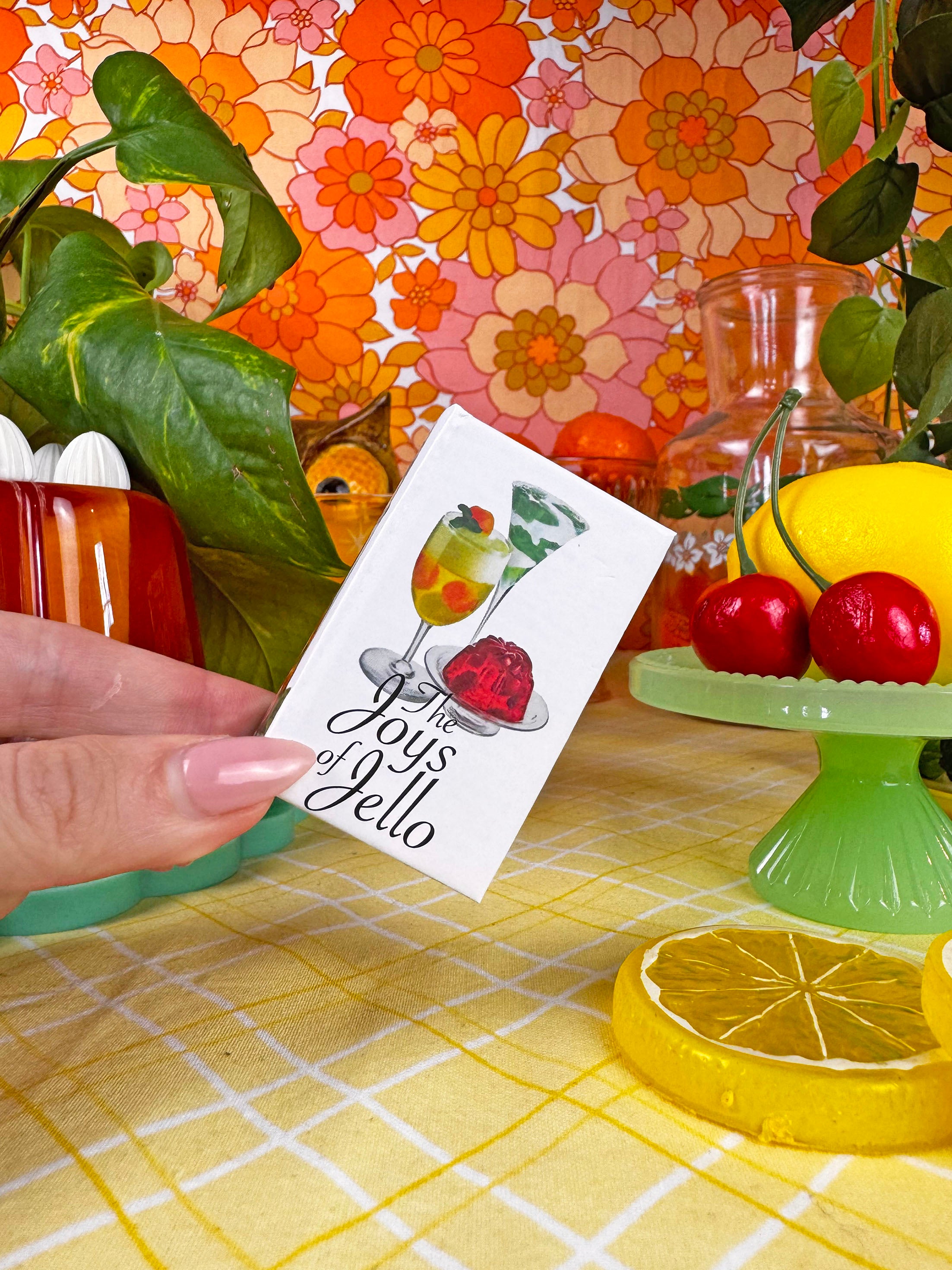 Designed to look and open like an actual book, these matches feature tons of delicious recipes for jello enthusiasts everywhere!
