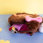 This coin pouch is designed to look like an adorable little Monchhichi and conveniently hold small items on your keychain. Think change, meds, band aids, mints, etc! Cute AND functional! Comes with a pink carabiner for easy attachment to your keys, backpack, bag, etc!