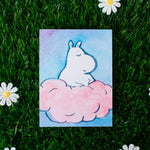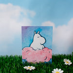 This print features Moomin sitting serenely on a pink cloud! Made by artist Rebekah Evans, this watercolor print looks adorable on a shelf and makes for the sweetest gift!