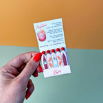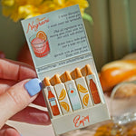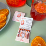 Each matchbook has 10 matches, each printed front and back with an ingredient to make the cocktail. Match heads are custom colored to coordinate with the matchbook.