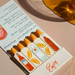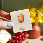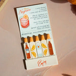 This matchbook features the most refreshing cocktail- a Negroni! The art is done by meeeee! The inside of the matchbook has the recipe for the cocktail and each match features a different ingredient of that cocktail cause we cute like that.