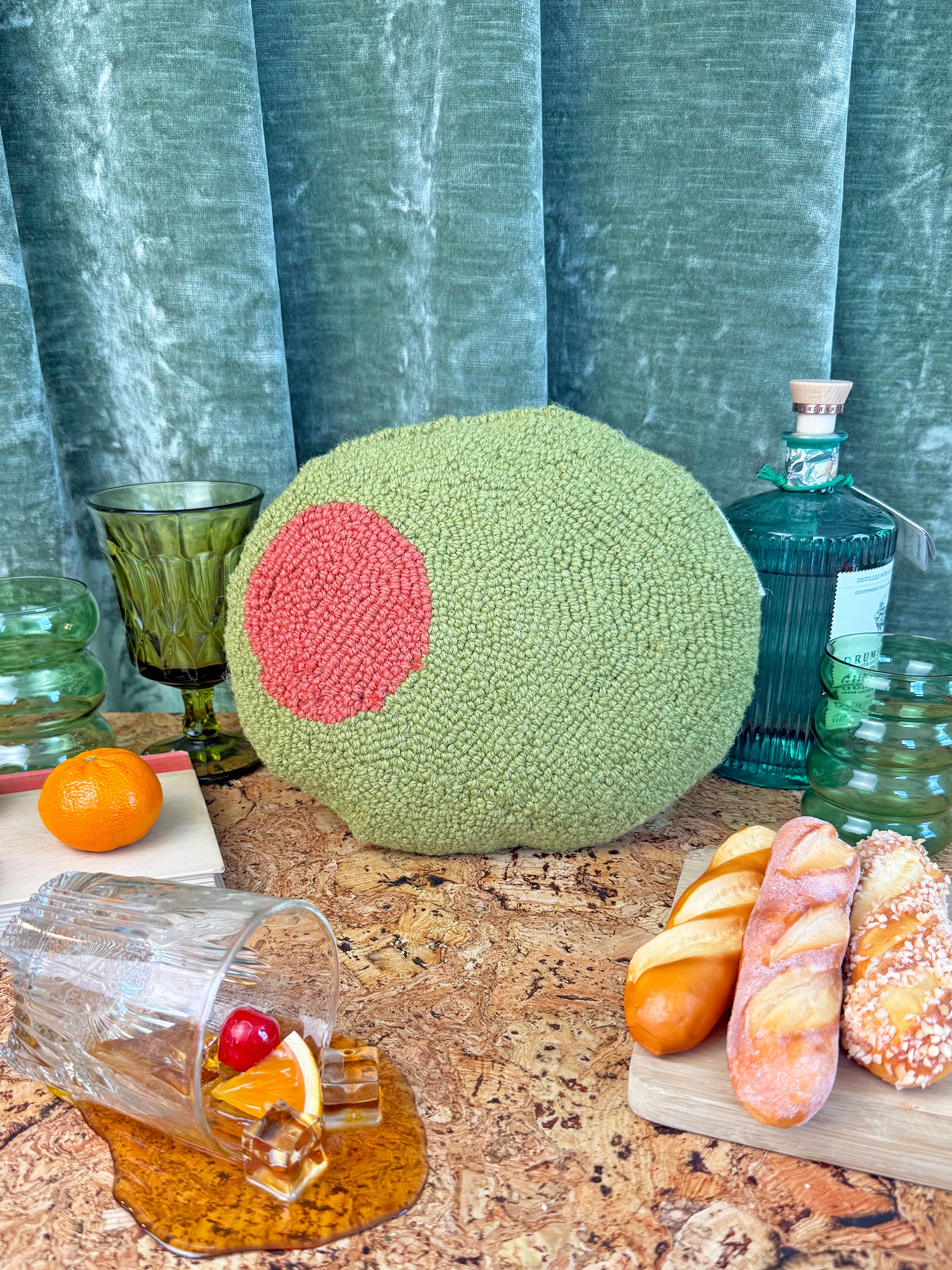 Your couch called, it needs this pillow stat!! Shaped like a delicious stuffed olive, this high quality throw pillow is a must have for your favorite armchair or reading nook! Such a cute gift for the martini lover in your life!