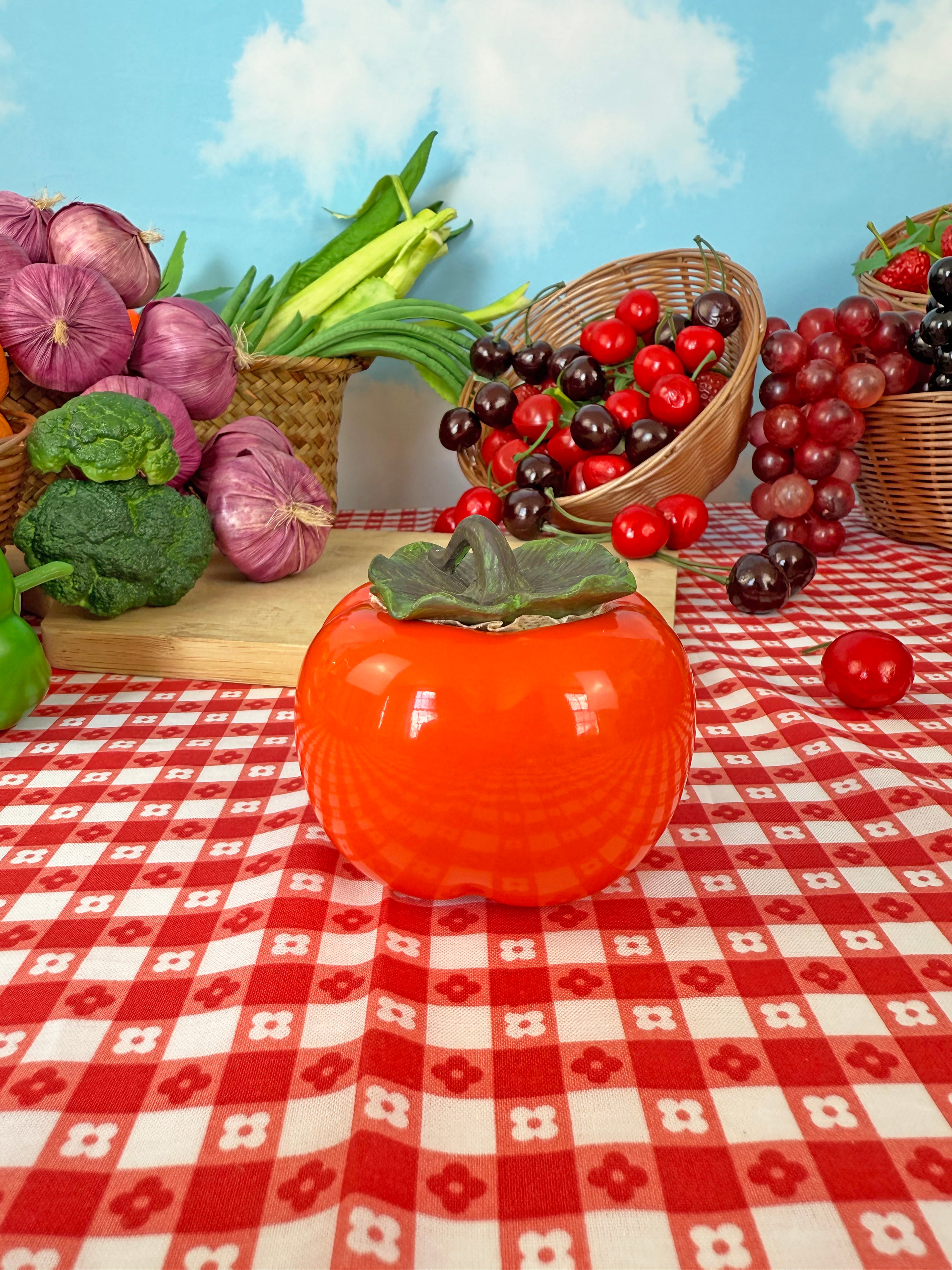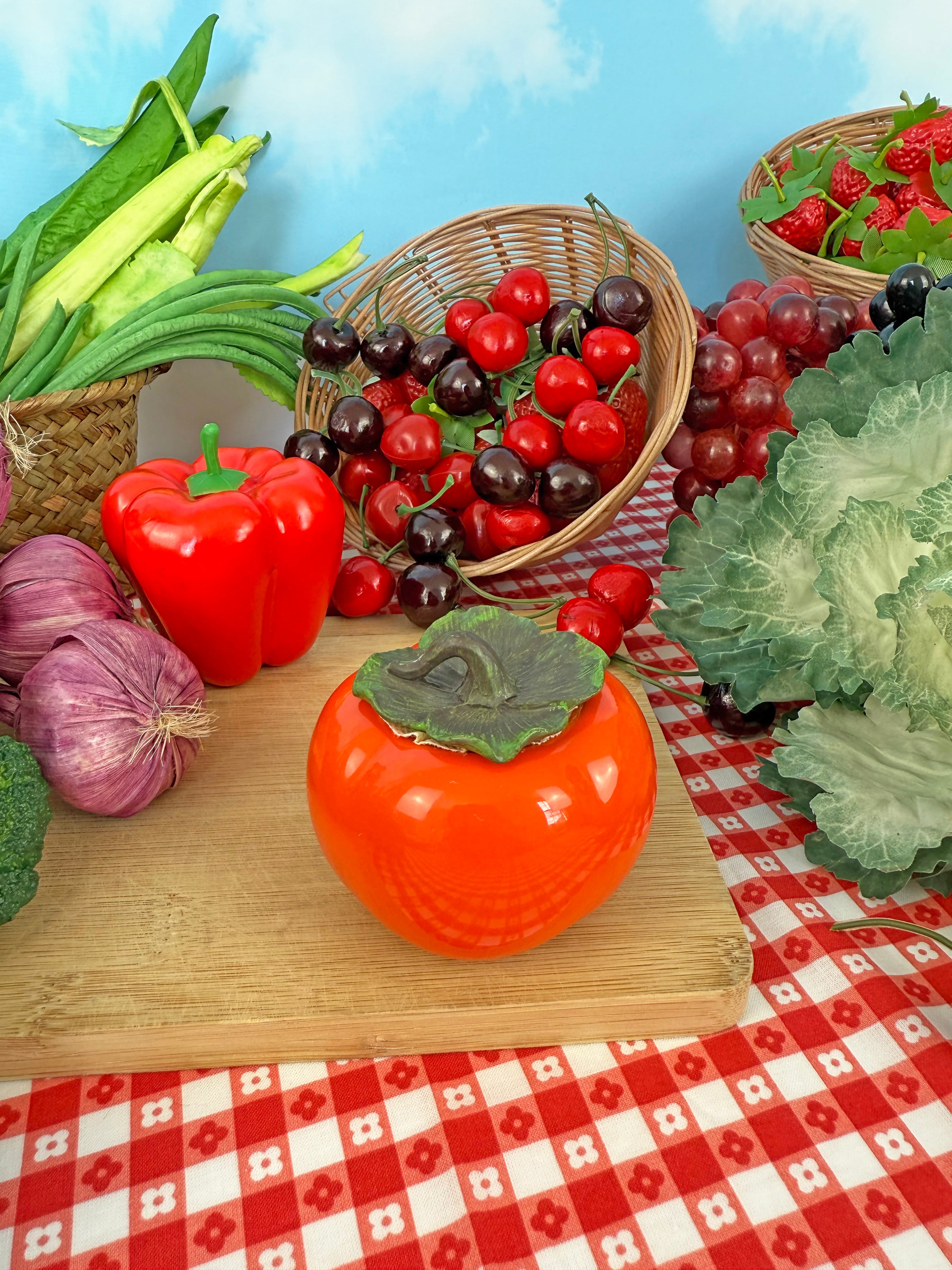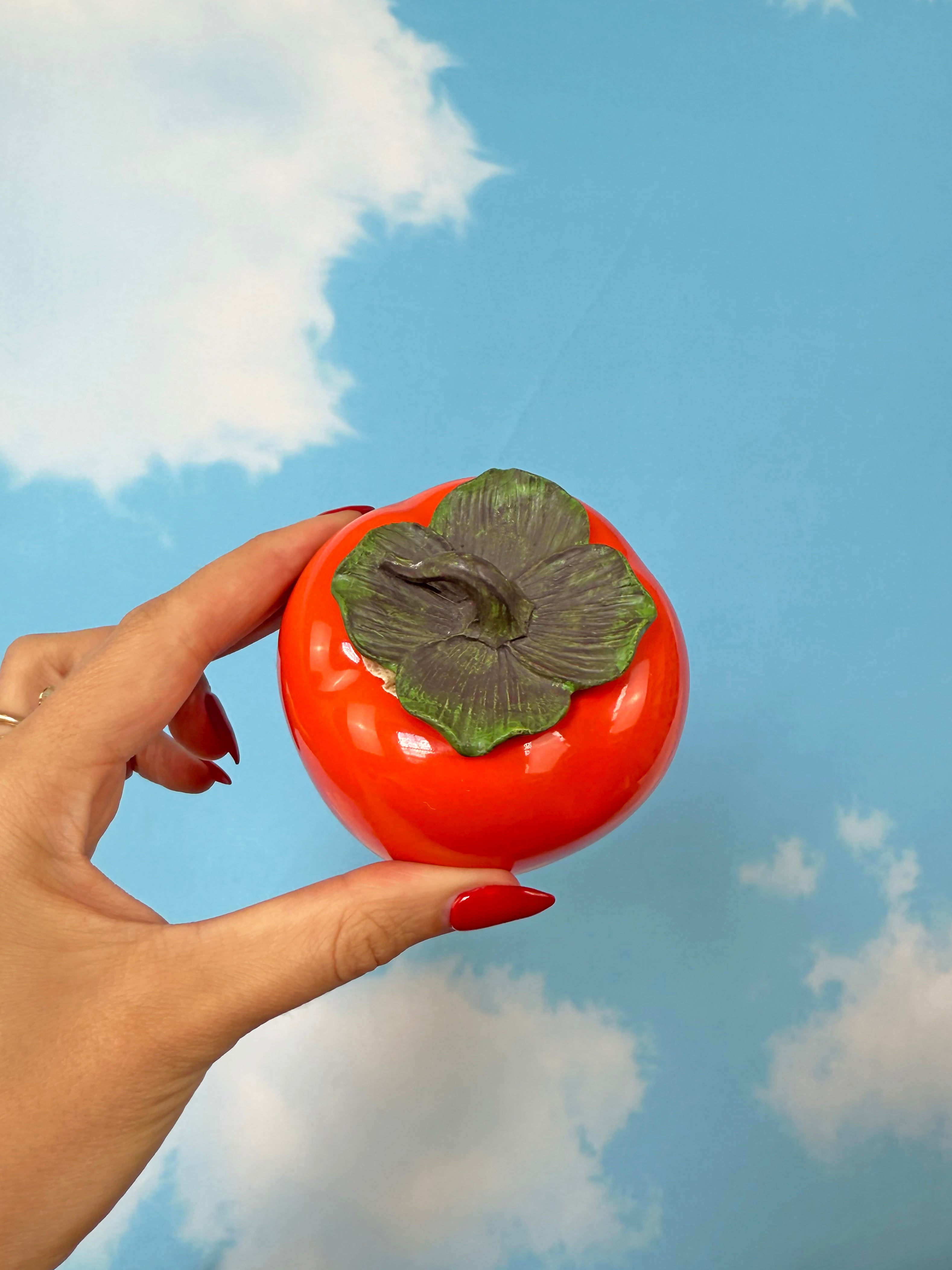 Ohhh how we love when objects look like other objects!! This vibrant persimmon stash jar is as cute as it is functional! It opens from the top stem and the lid seals tightly, keeping whatever's inside safe 'n sound. We love the realistic detailing on the stem and leaves - this piece would look adorable on a shelf when not in use!!