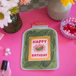 How CUTE is this card?! It's shaped like a big jar of pickles (yummy) and has a sweet label on the front that reads "HAPPY BIRTHDAY". The pickle jar design continues onto the back of the card, too! Perfect card for the pickle lover in your life! T