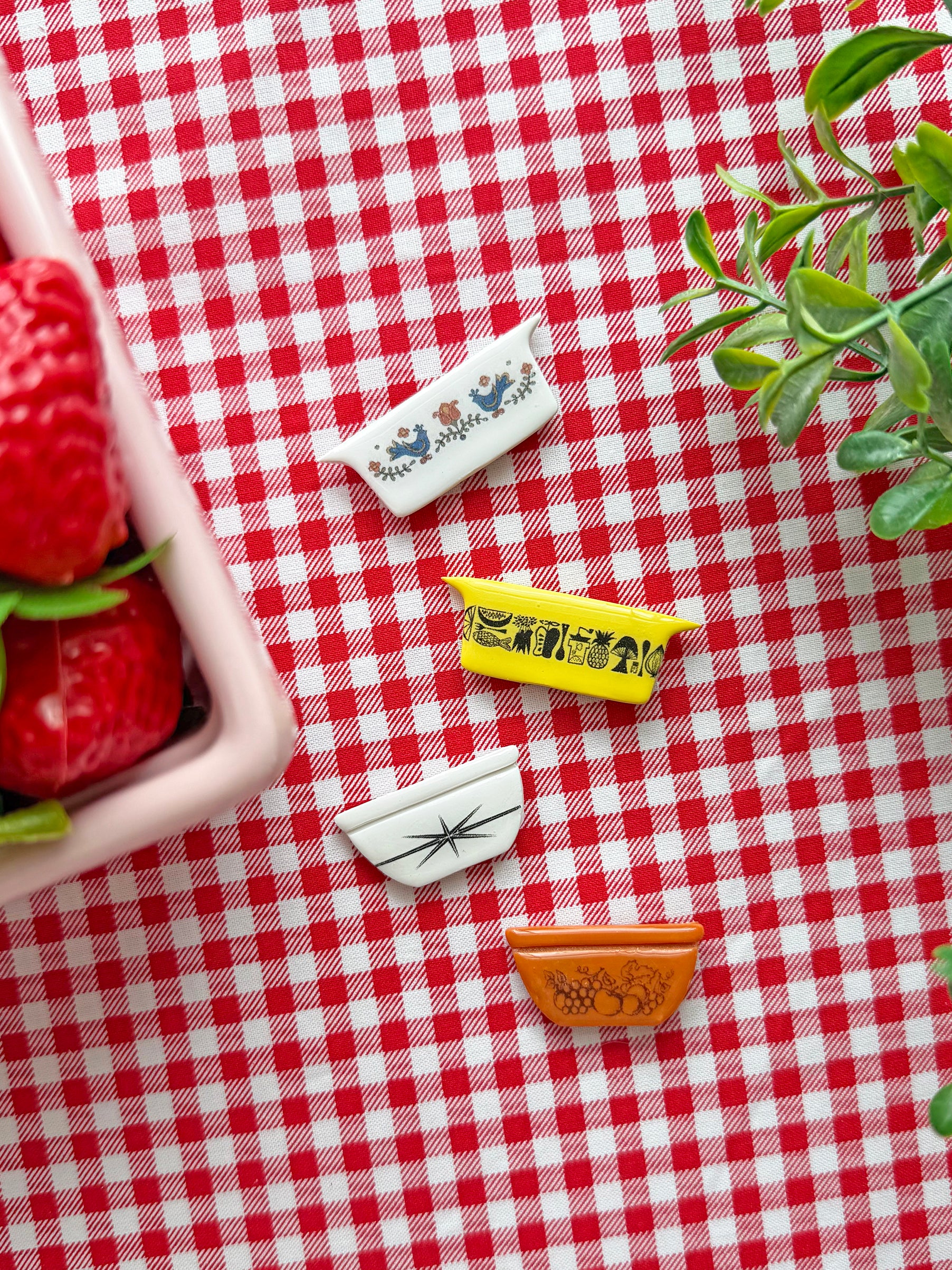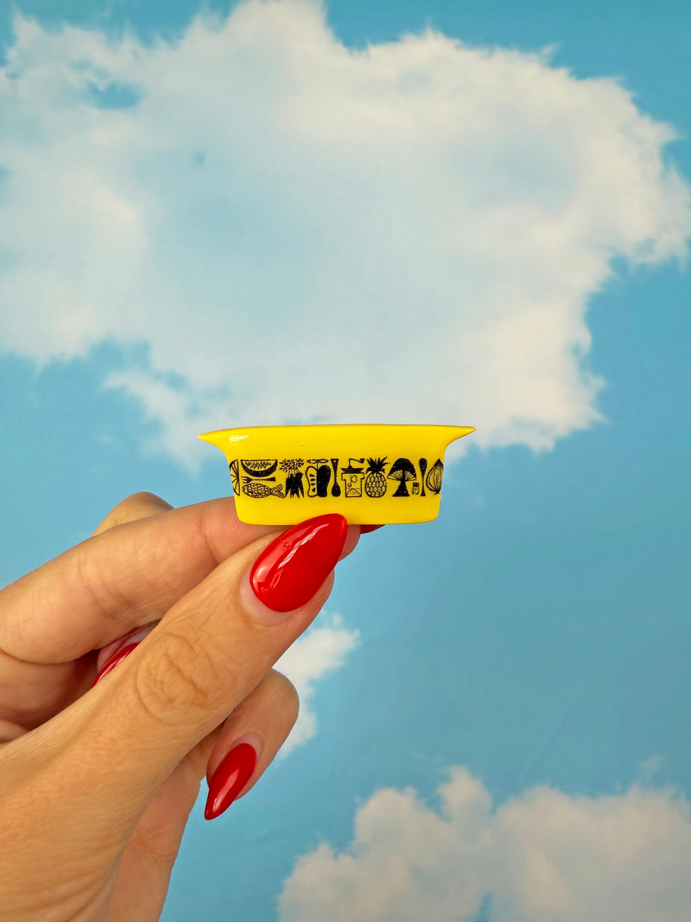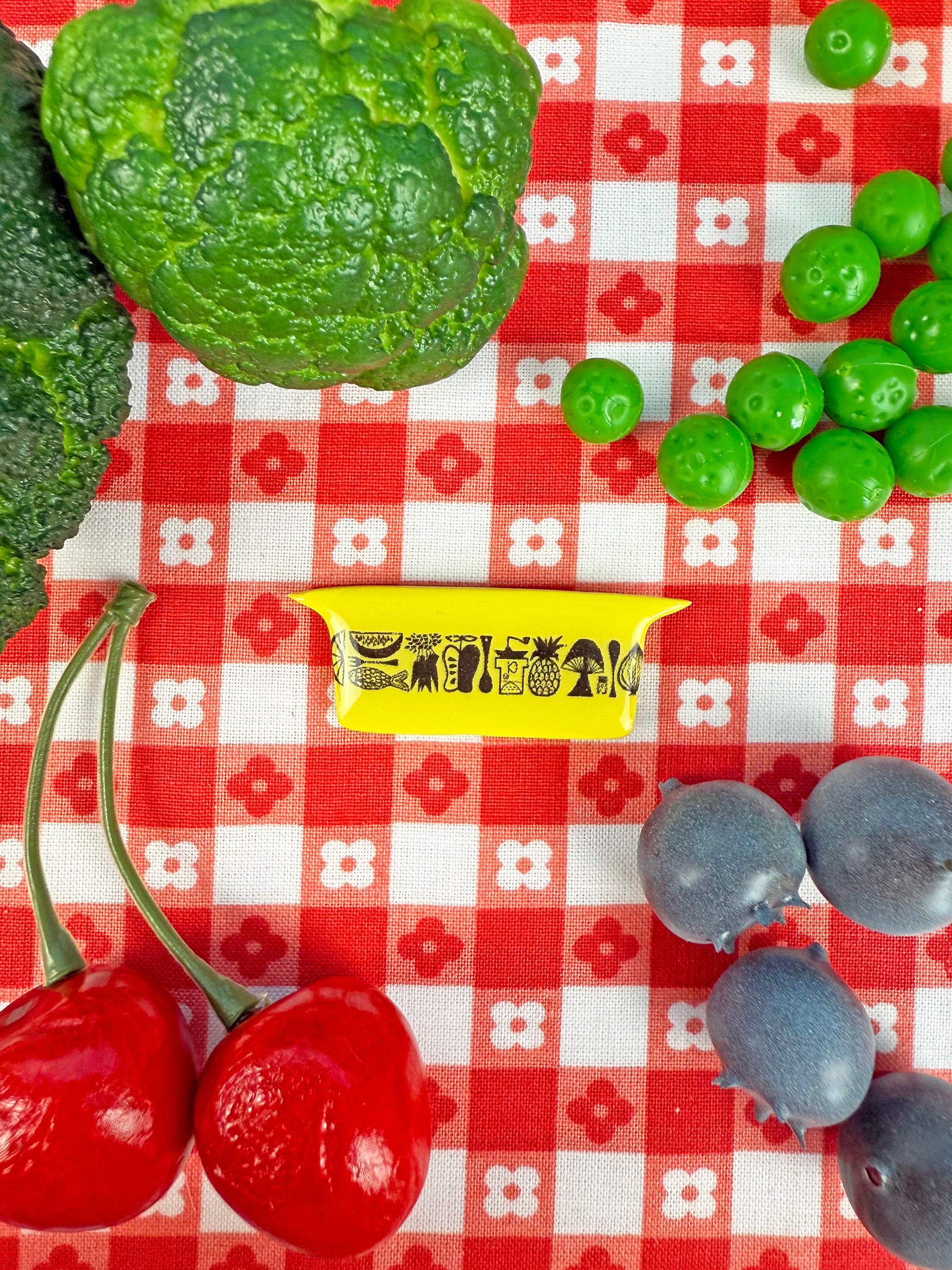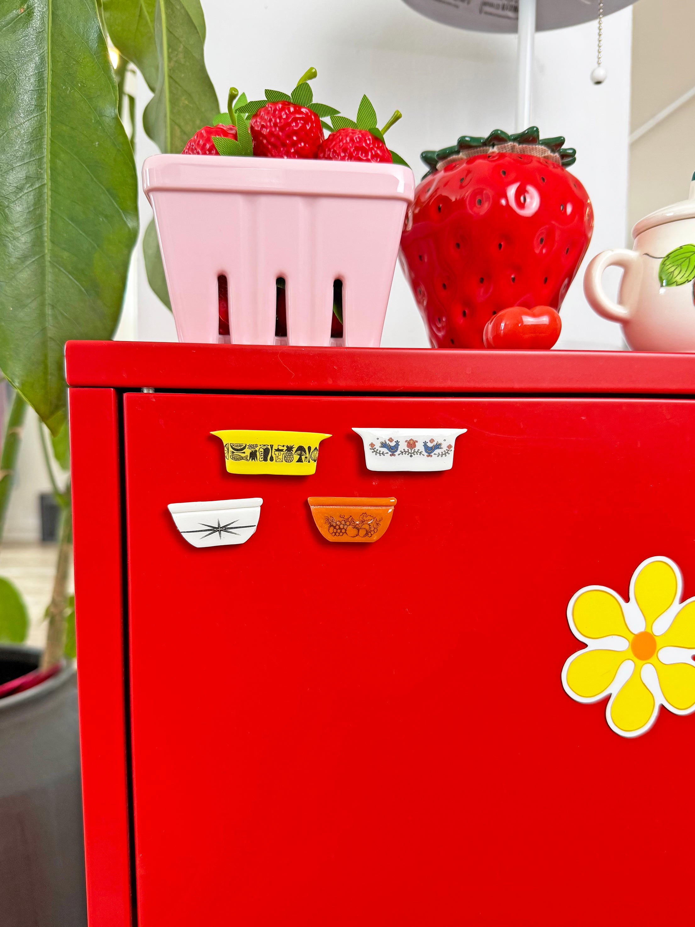 We all know and love these classic bowls! This adorable clay magnet features a yellow vintage-style bowl with a mod kitchen design filled with all the essentials. Perfect for fridges, lockers, calendar boards, etc!