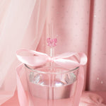 Made of glass, so no chance of that weird metallic taste you get with some metal straws. Features one little pink bow at the top of the straw. So cute!
