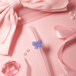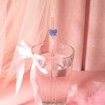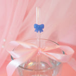 Made of glass, so no chance of that weird metallic taste you get with some metal straws. Features one little jade blue bow at the top of the straw. So cute!