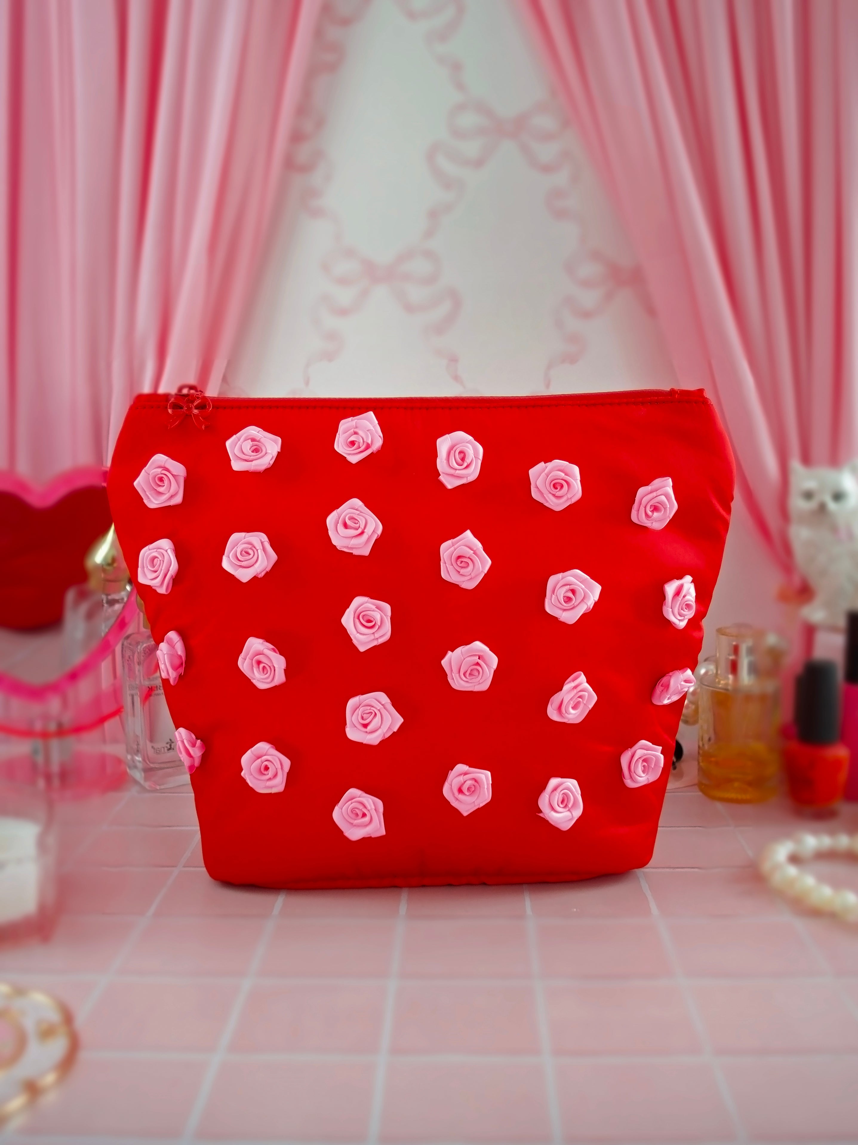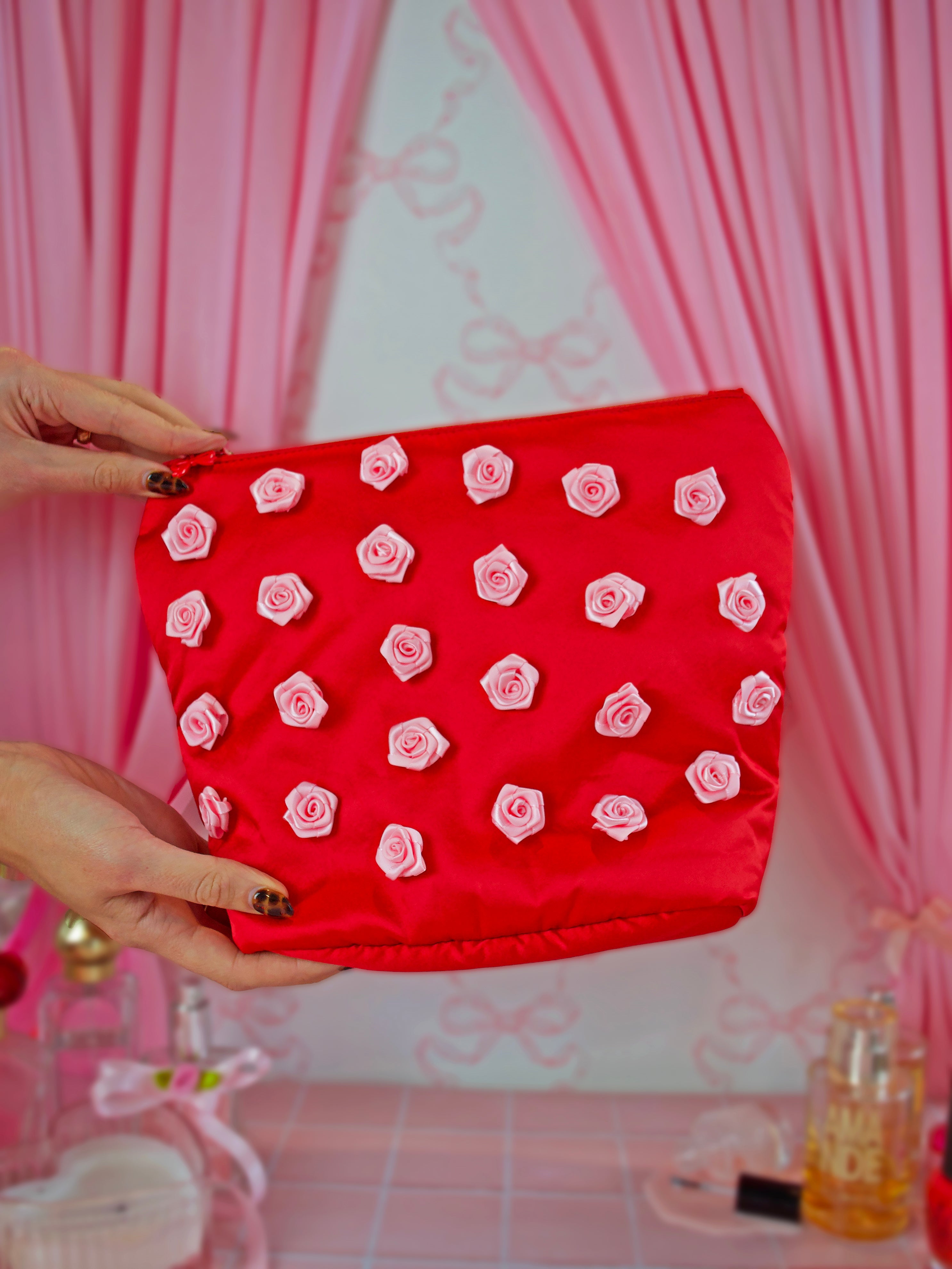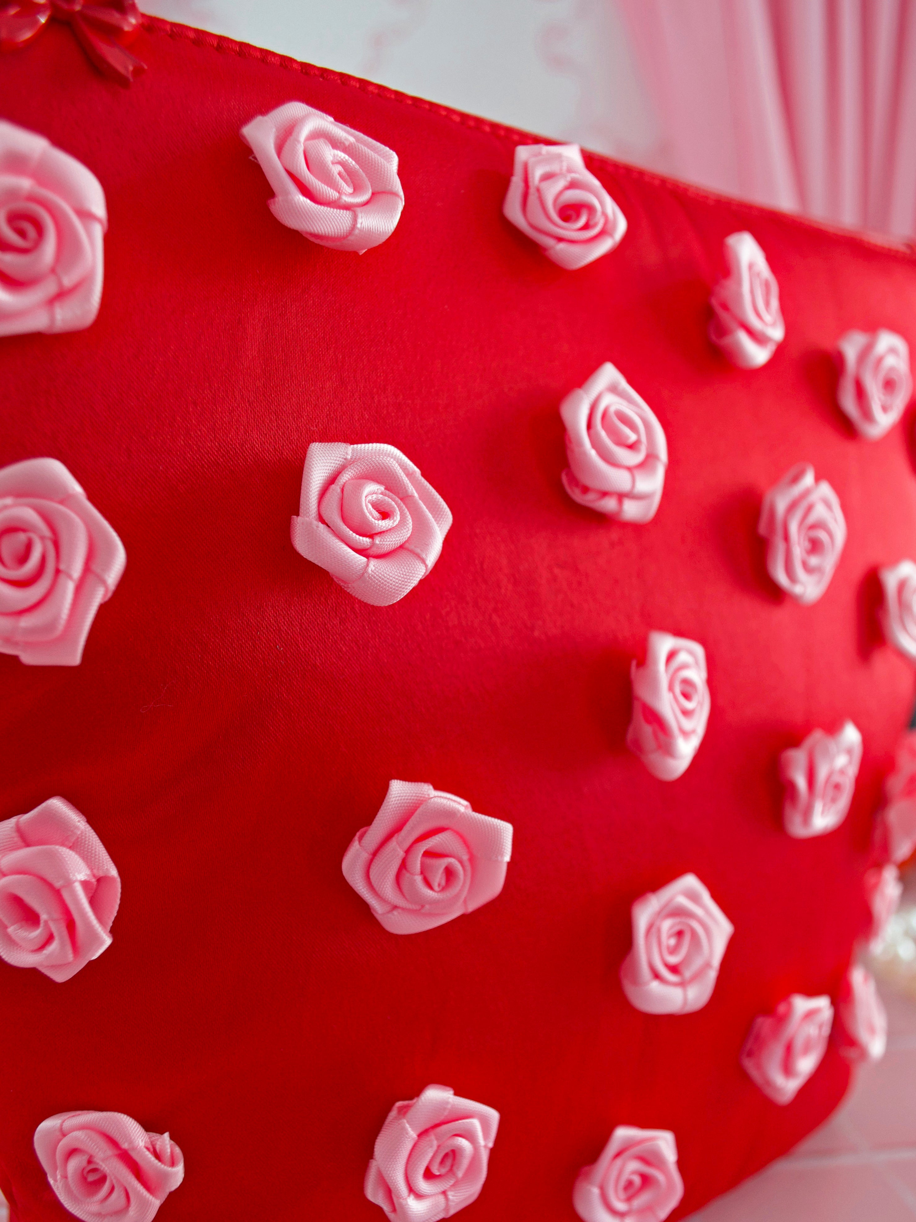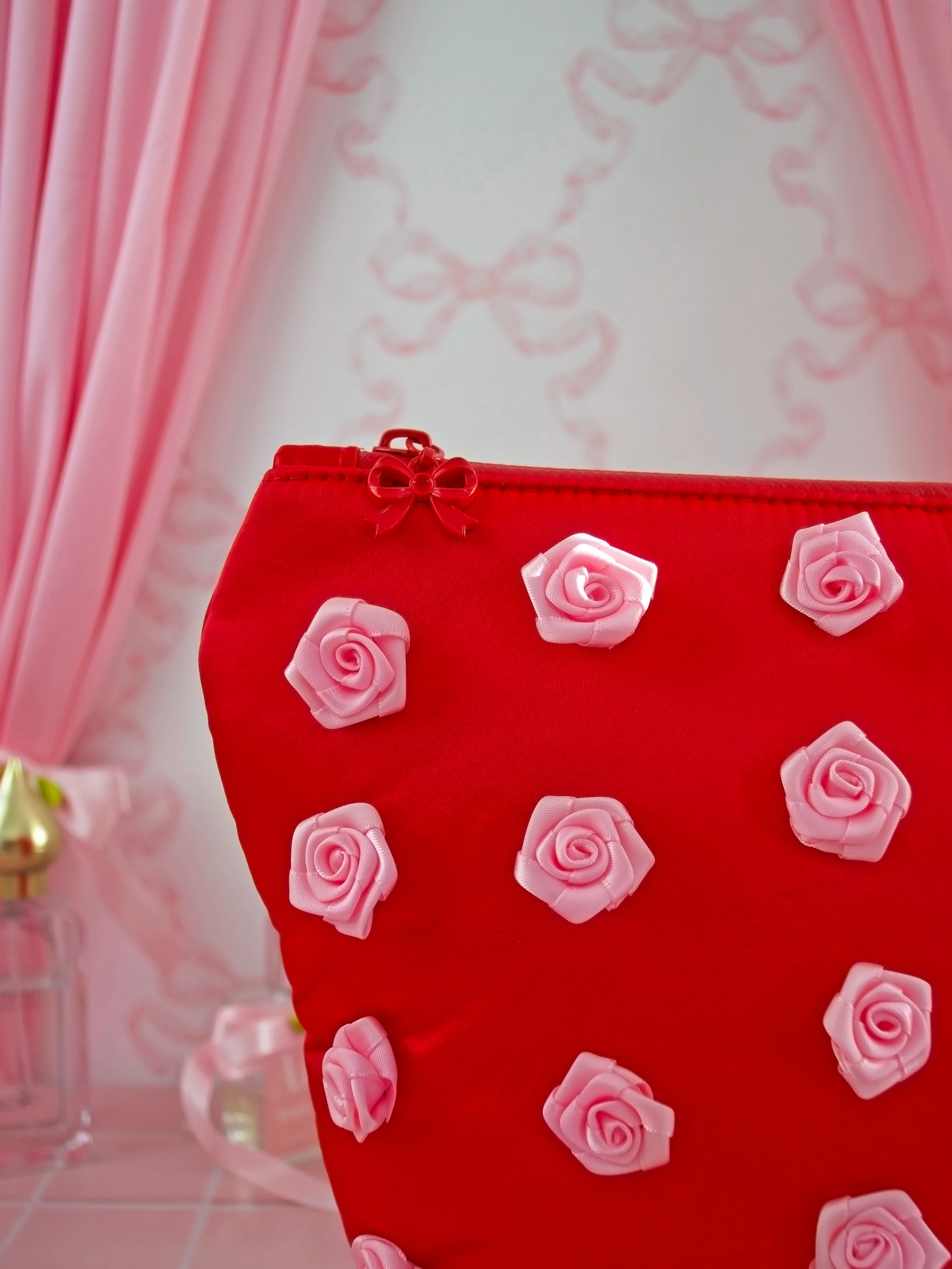 This adorable, pink rosette covered smell proof bag is just the thing you need for your next sesh! Comes in a dreamy red color with a silk-like finish and little pink rosettes covering the front side of the bag - what more could a coquette girlie ask for?