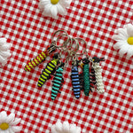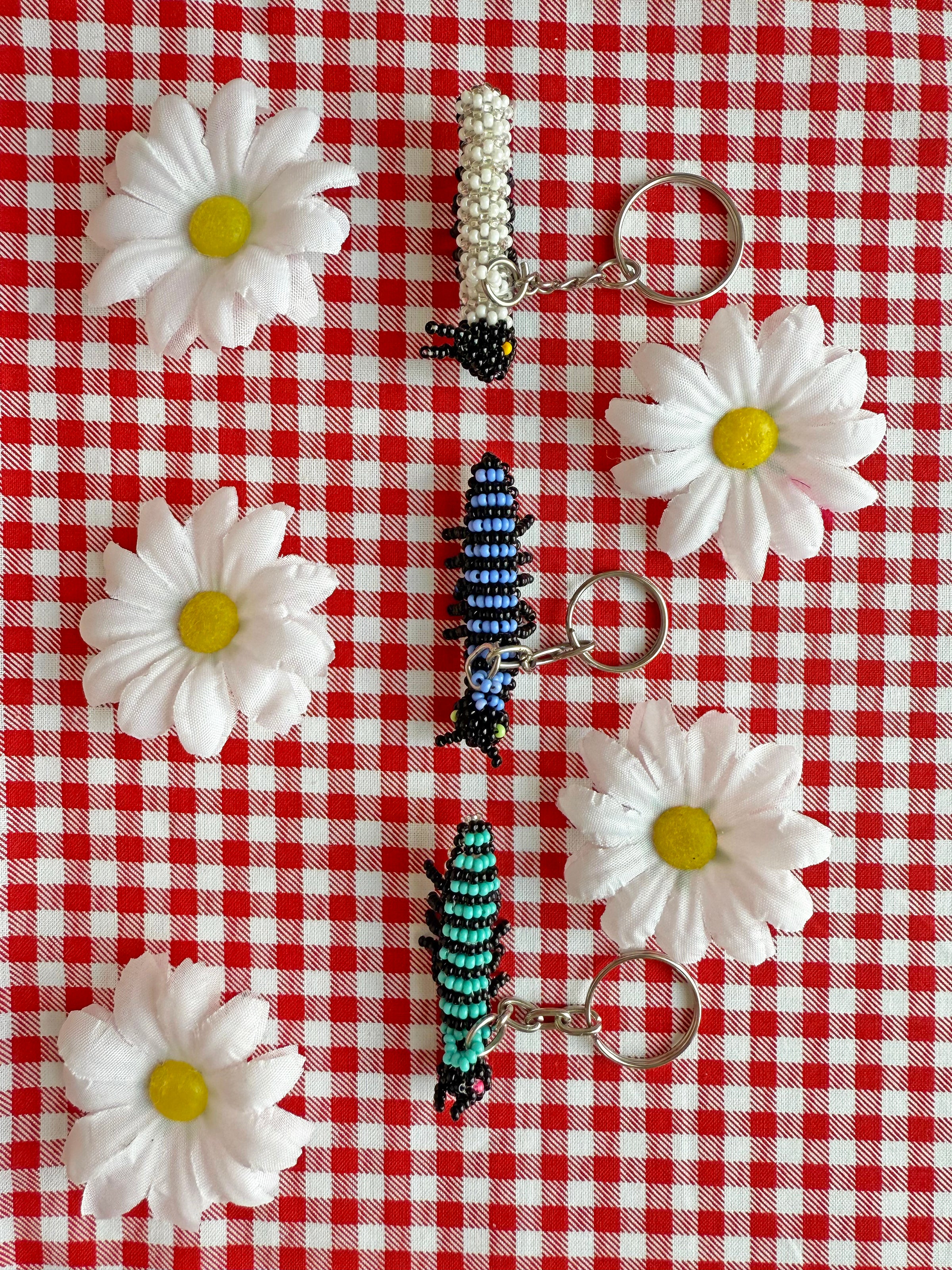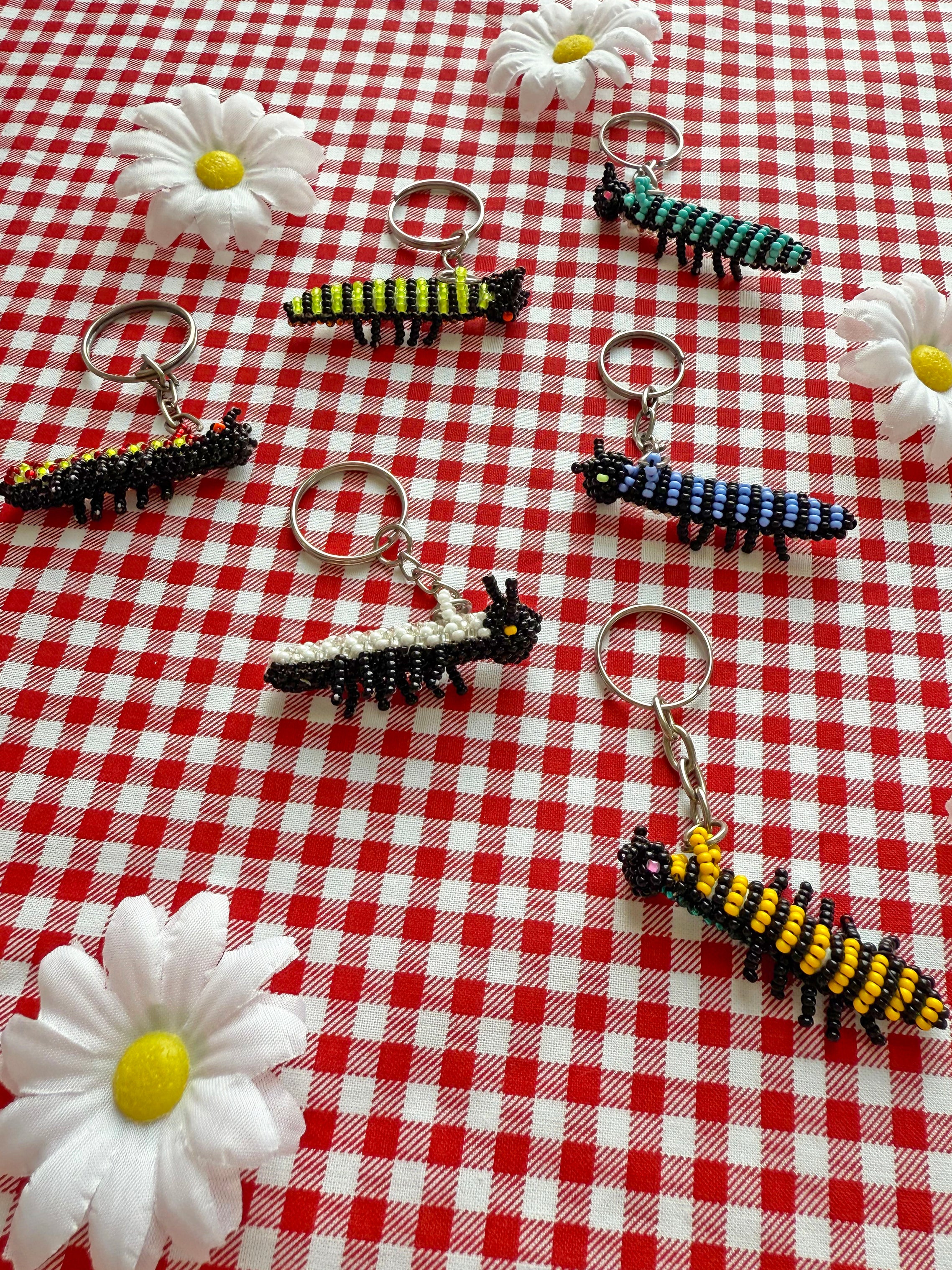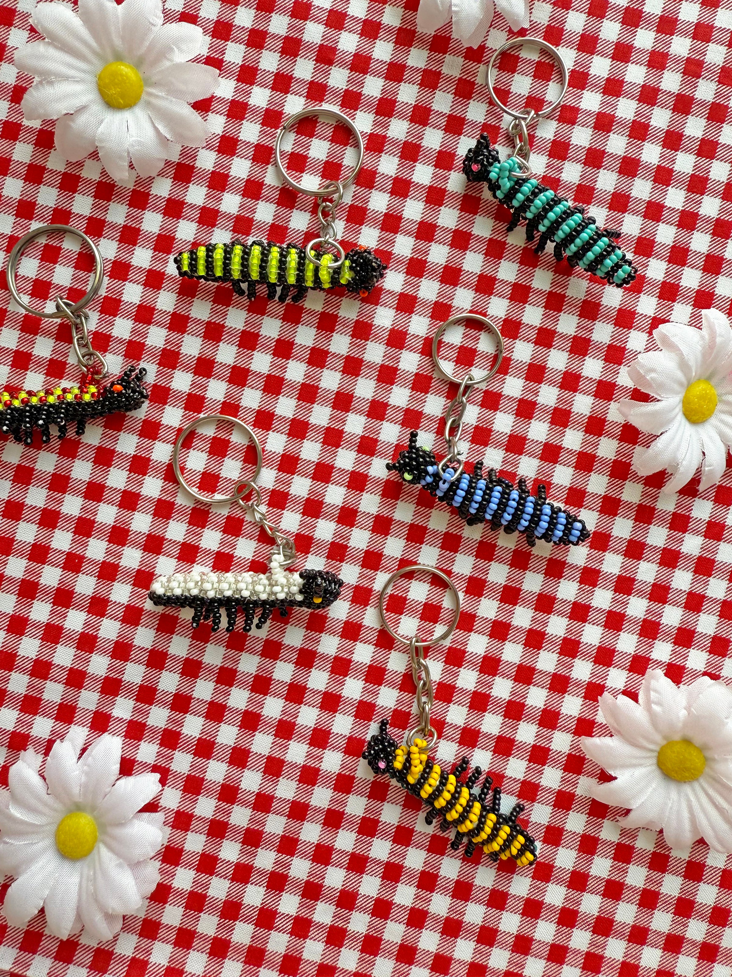 How precious is this keychain? It features the cutest lil beaded caterpillar on a silver keyring! The perfect accessory for your keys, water bottle, bag, or whatever else you want to put it on!