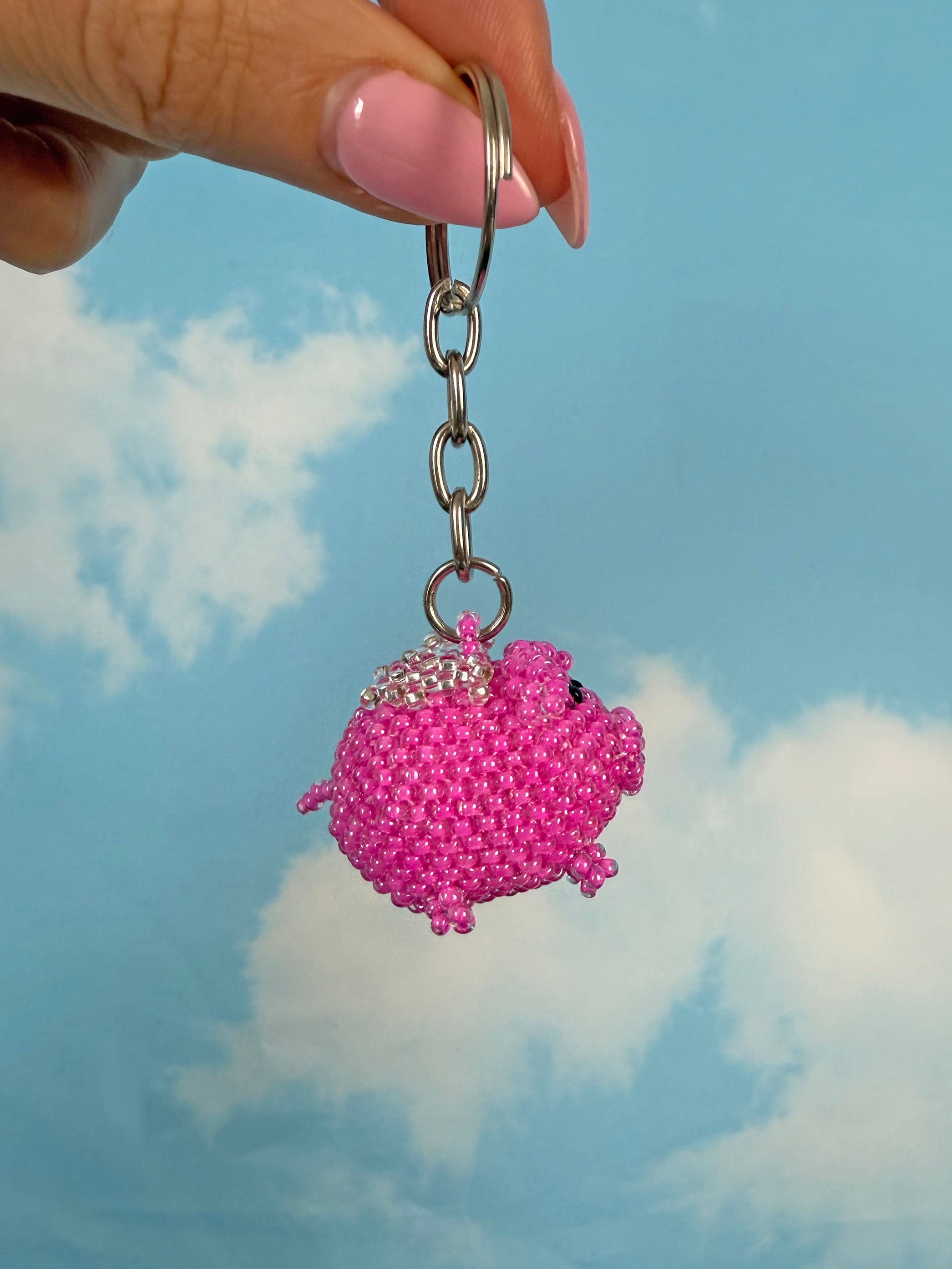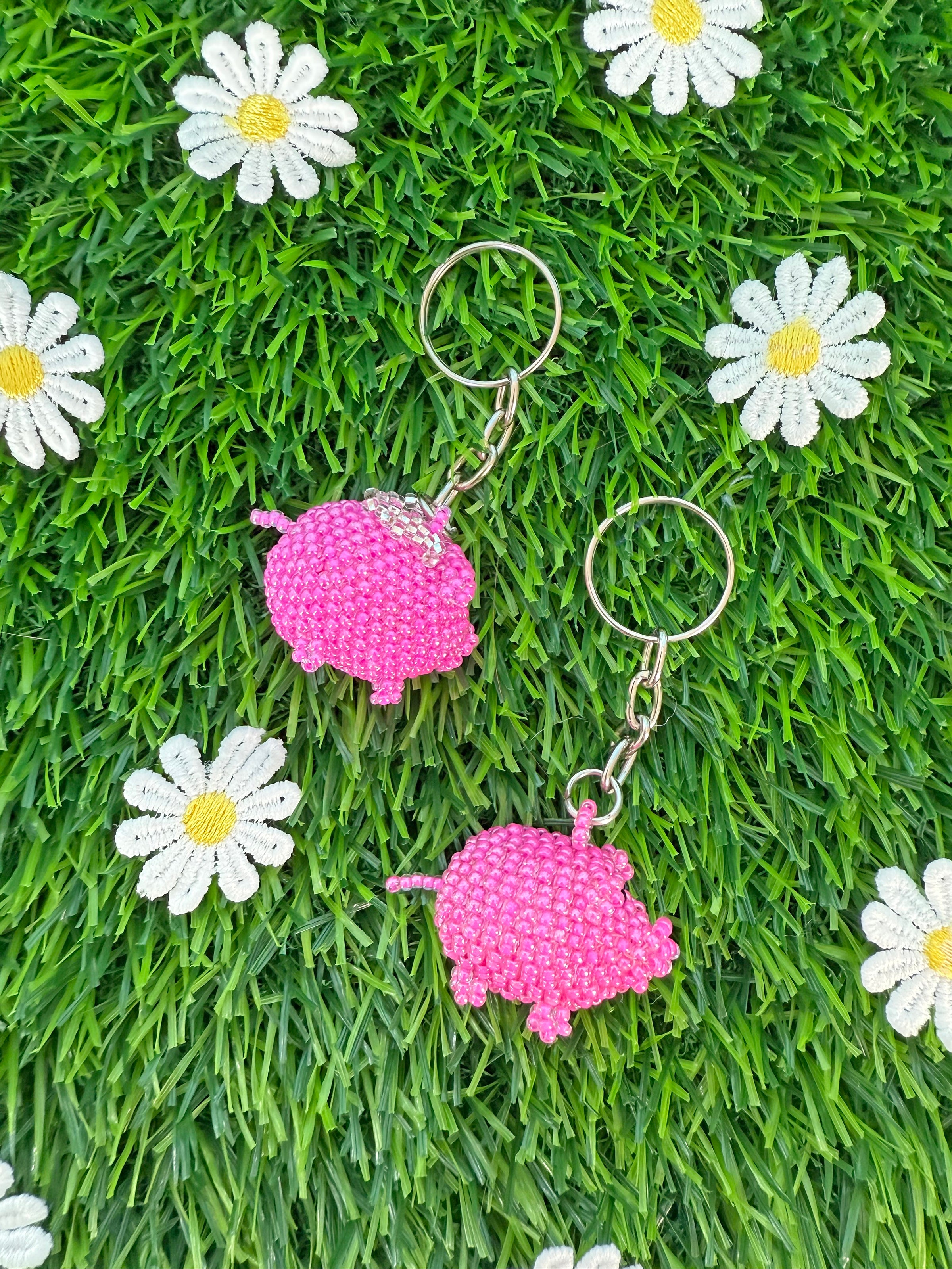 How precious is this keychain?! It features the cutest lil beaded pig on a silver keyring! The perfect accessory for your keys, water bottle, bag, or whatever else you want to put it on!
