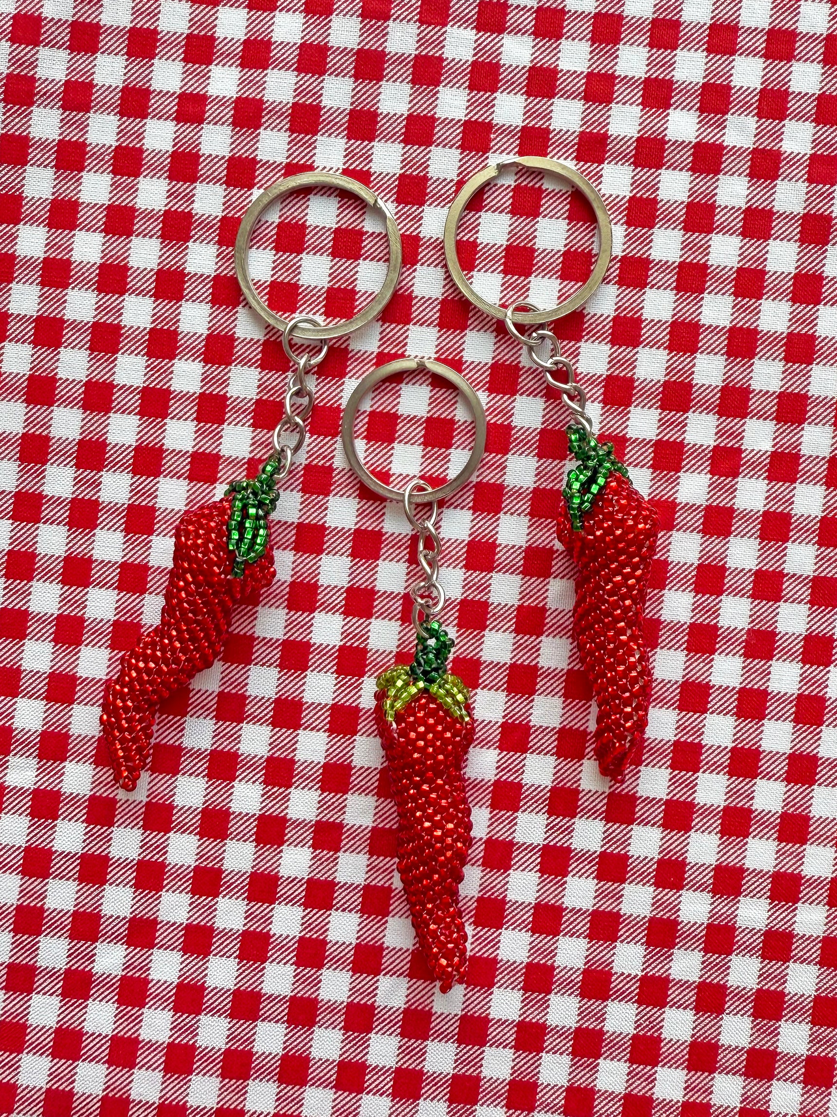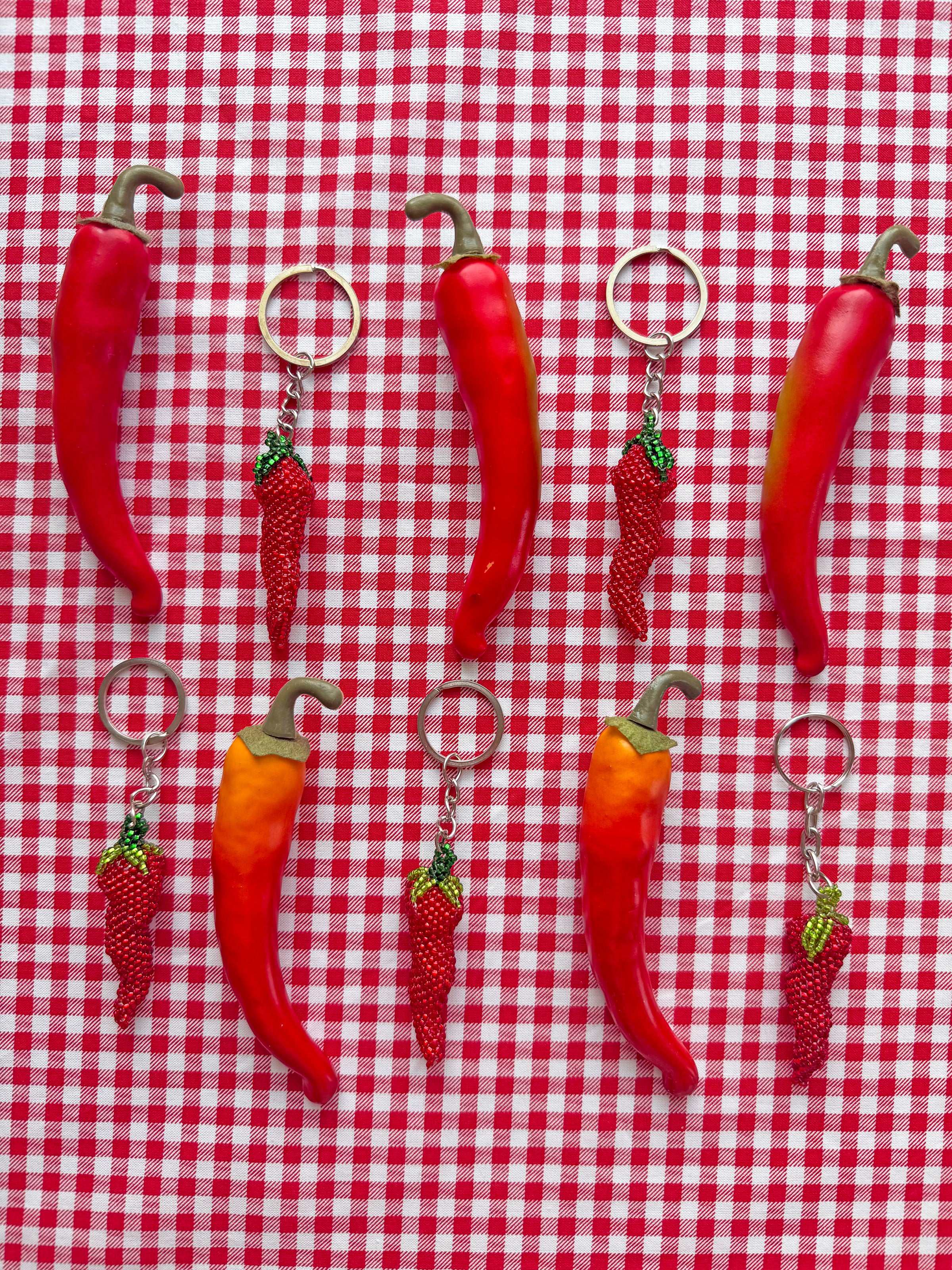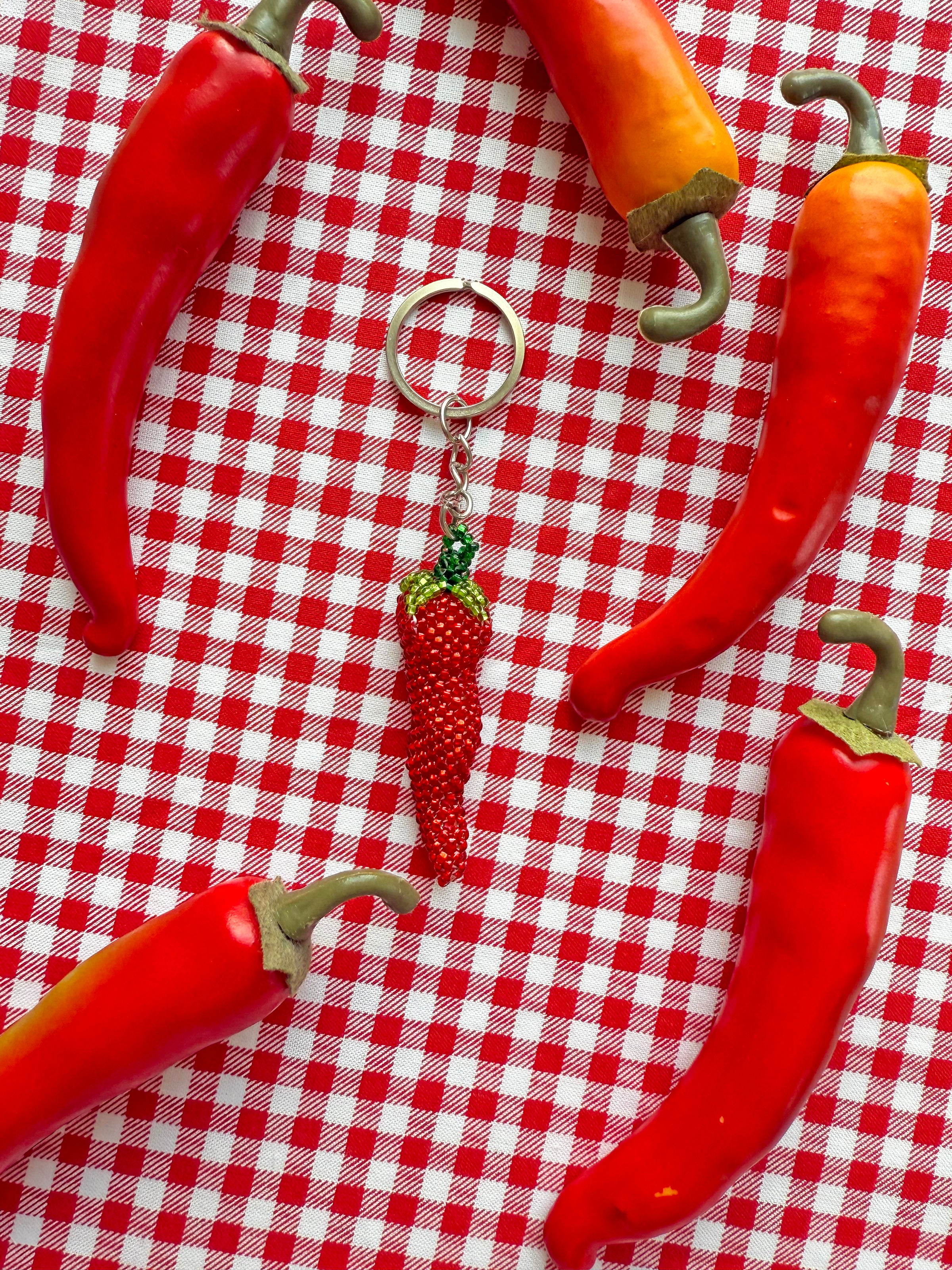 Hot Pepper Beaded Keychain