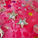 These cutesy star-shaped hair clips have that gorgeous hammered metal look and are adorned with pink and blue colored gems! Attached with silver alligator-style clips, they're perfect for a partial updo or holding up a few locks of hair for effortless style!